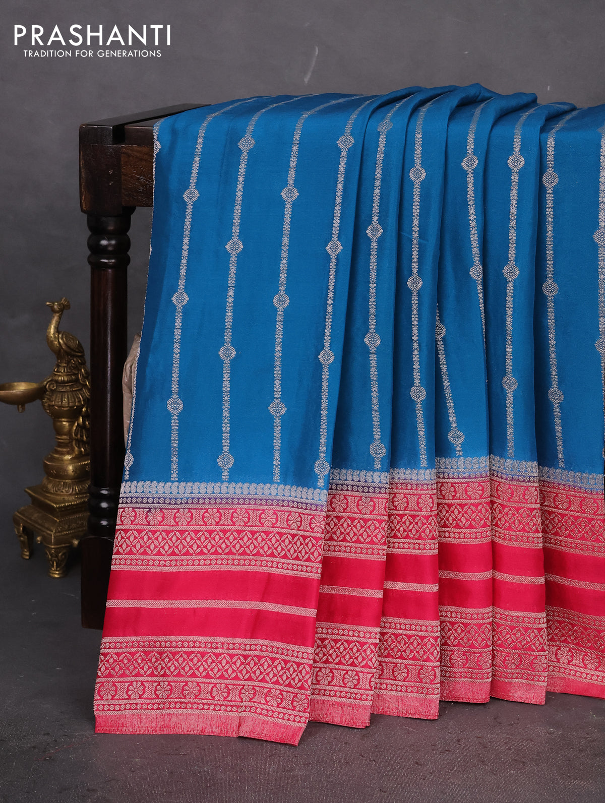 Banarasi semi crepe saree cs blue and pink with allover zari weaves and zari woven border