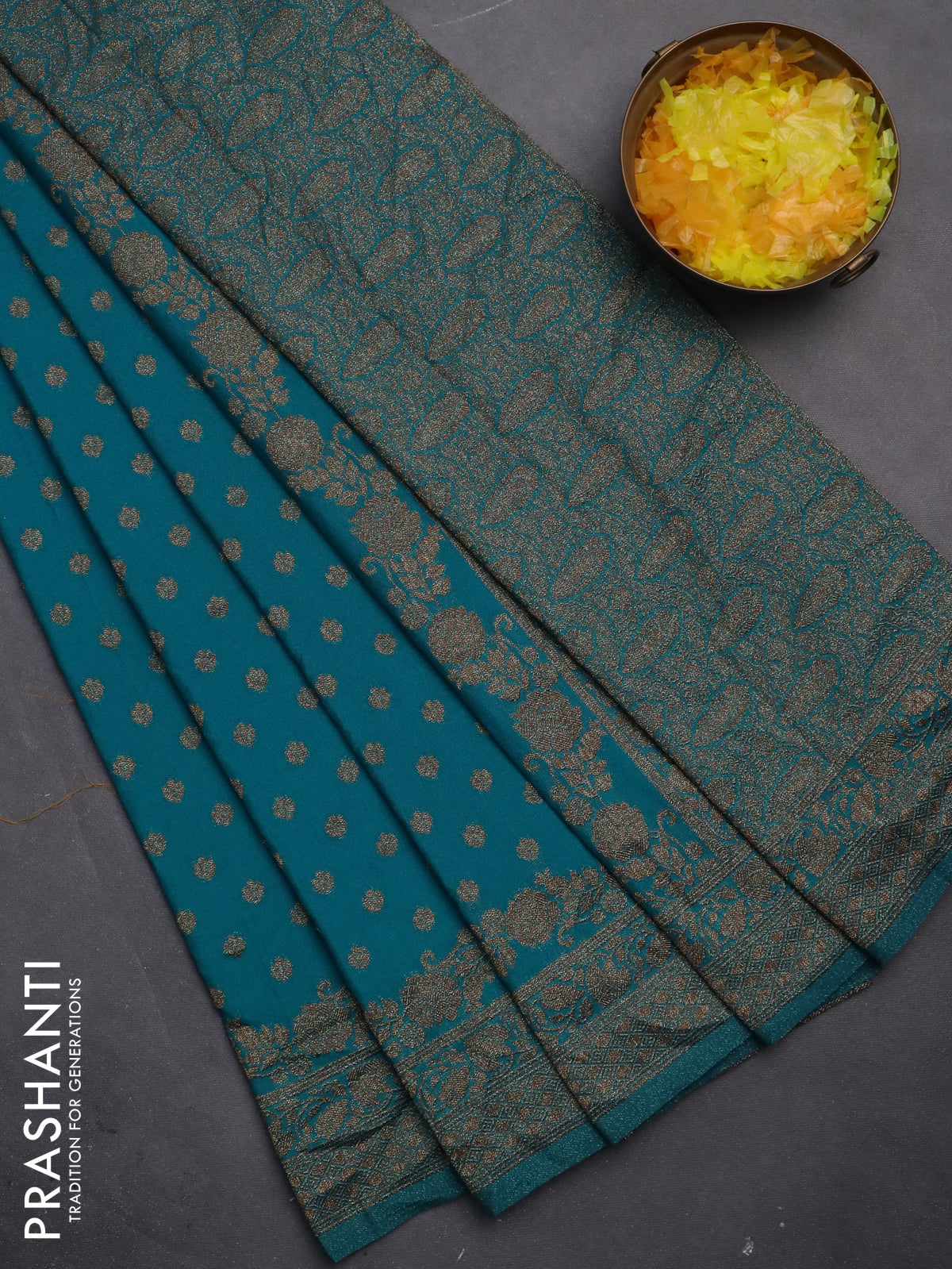 Banarasi semi crepe saree cs blue with woven buttas and woven border
