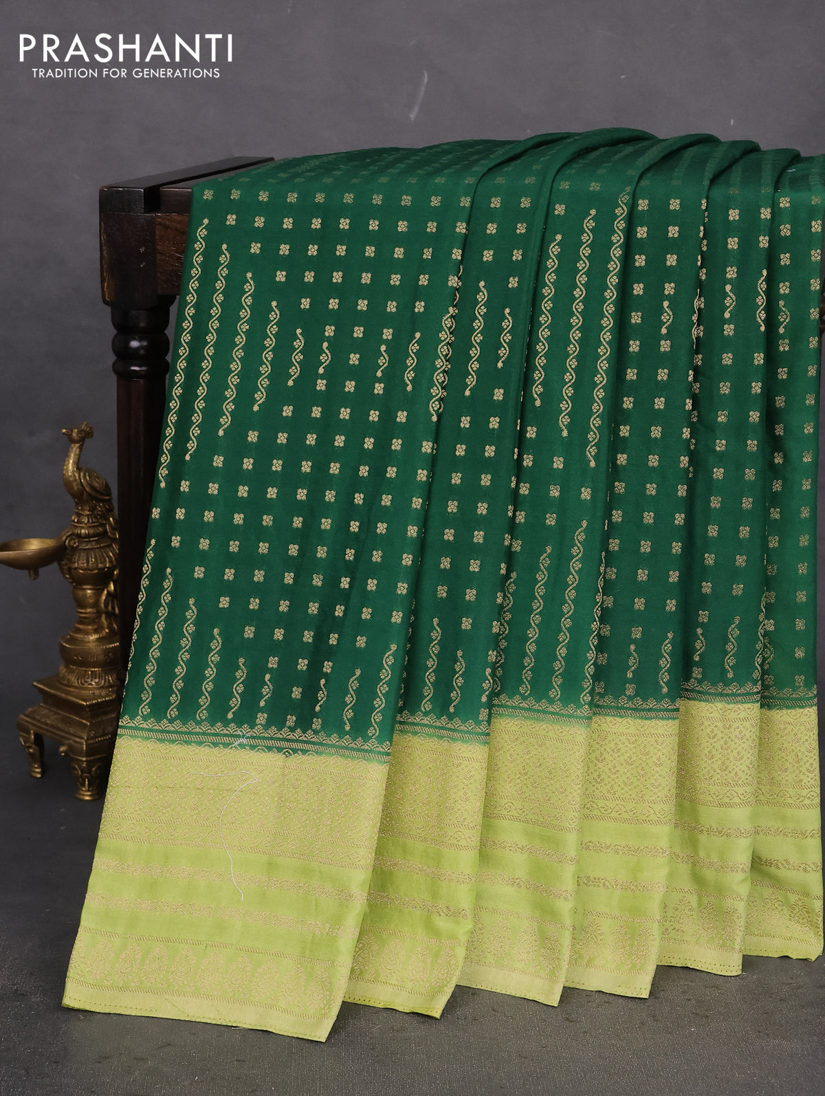 Banarasi semi crepe saree green and pista green with allover zari woven butta weaves and zari woven border