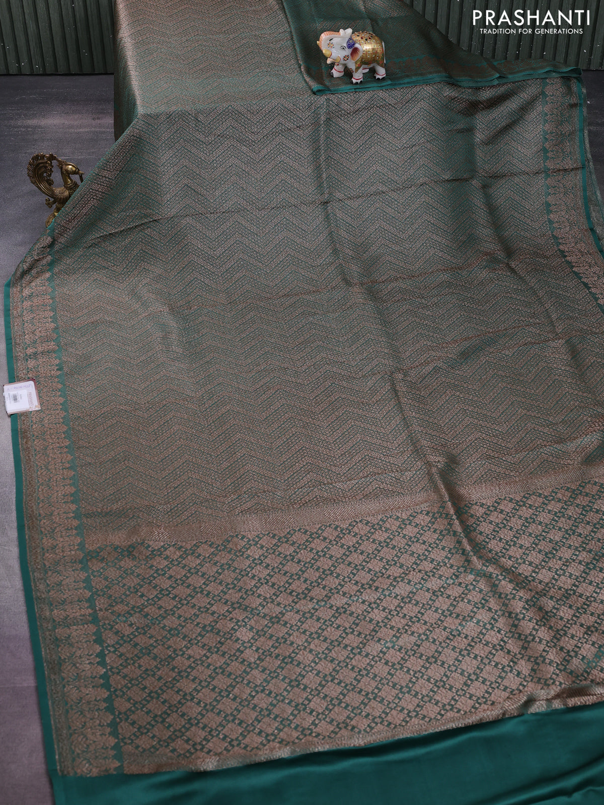 Banarasi semi crepe saree green with allover thread & zari woven brocade weaves and woven border
