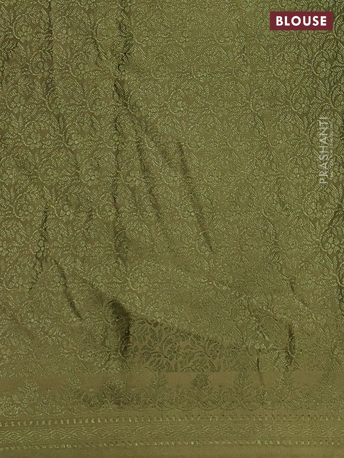 Banarasi semi crepe saree mehendi green with allover thread & zari woven brocade weaves and woven border