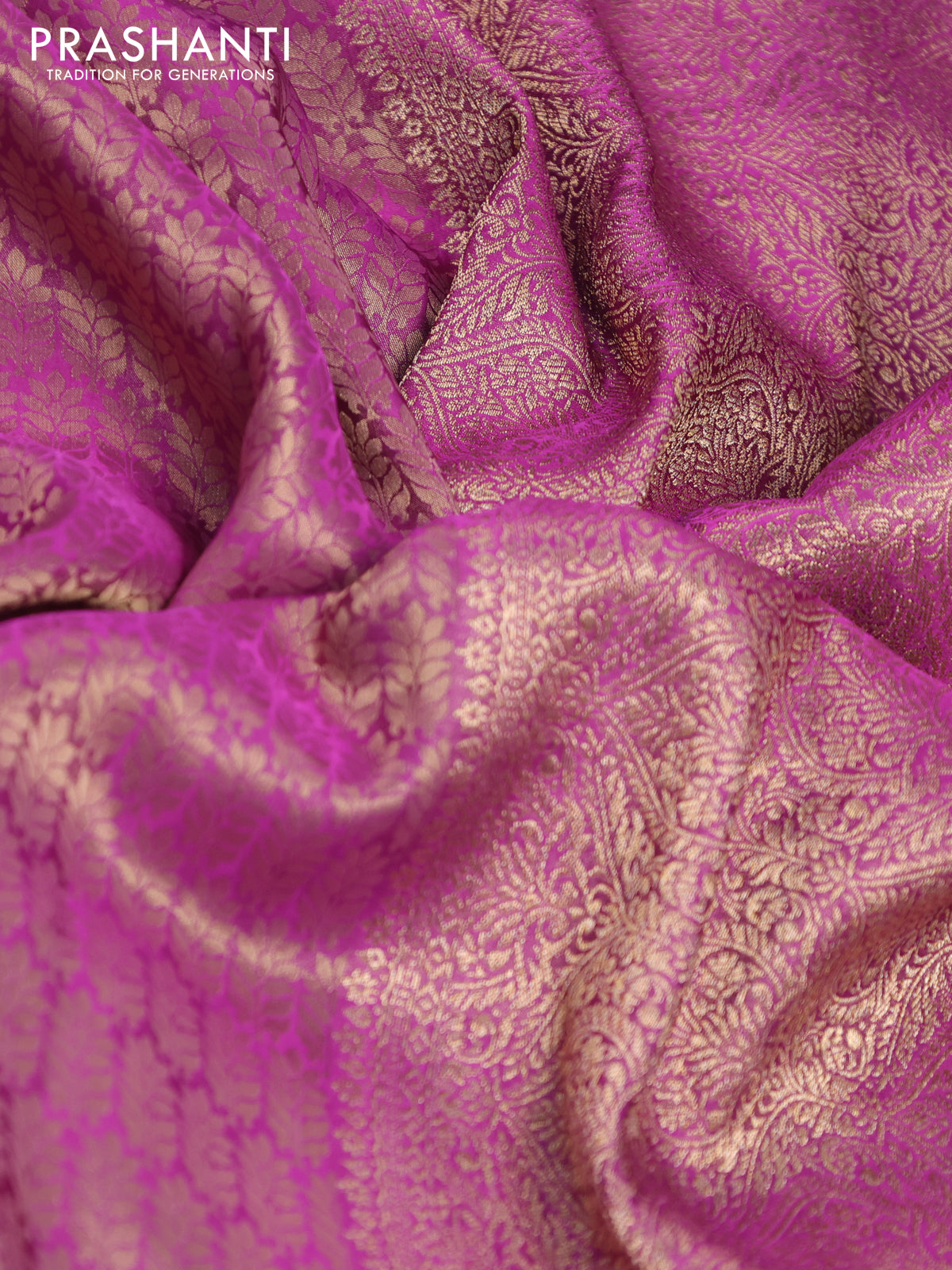 Banarasi semi crepe saree purple with allover zari woven brocade weaves and lace work border