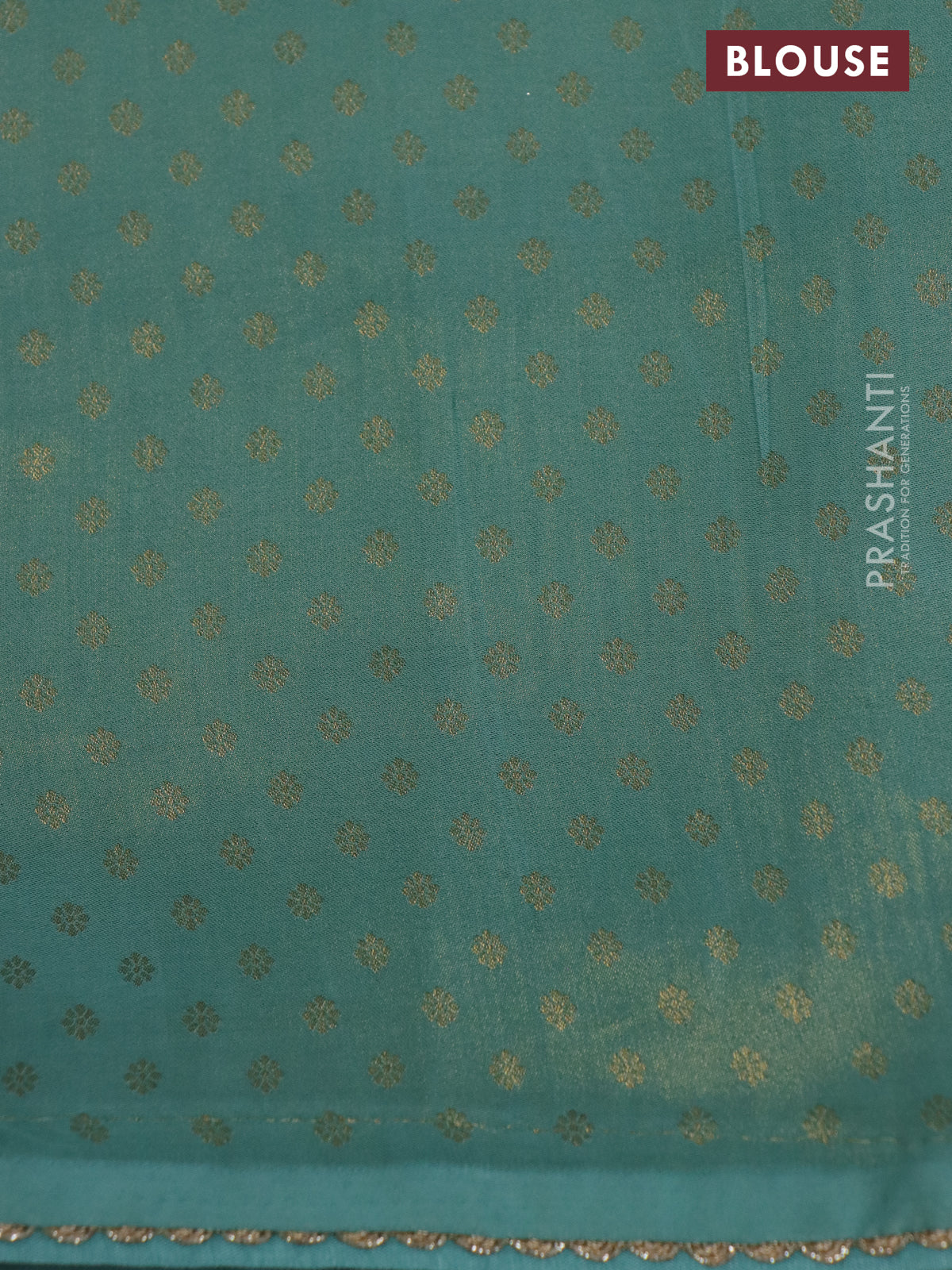 Banarasi semi crepe saree teal blue shade with allover zari woven brocade weaves and lace work border