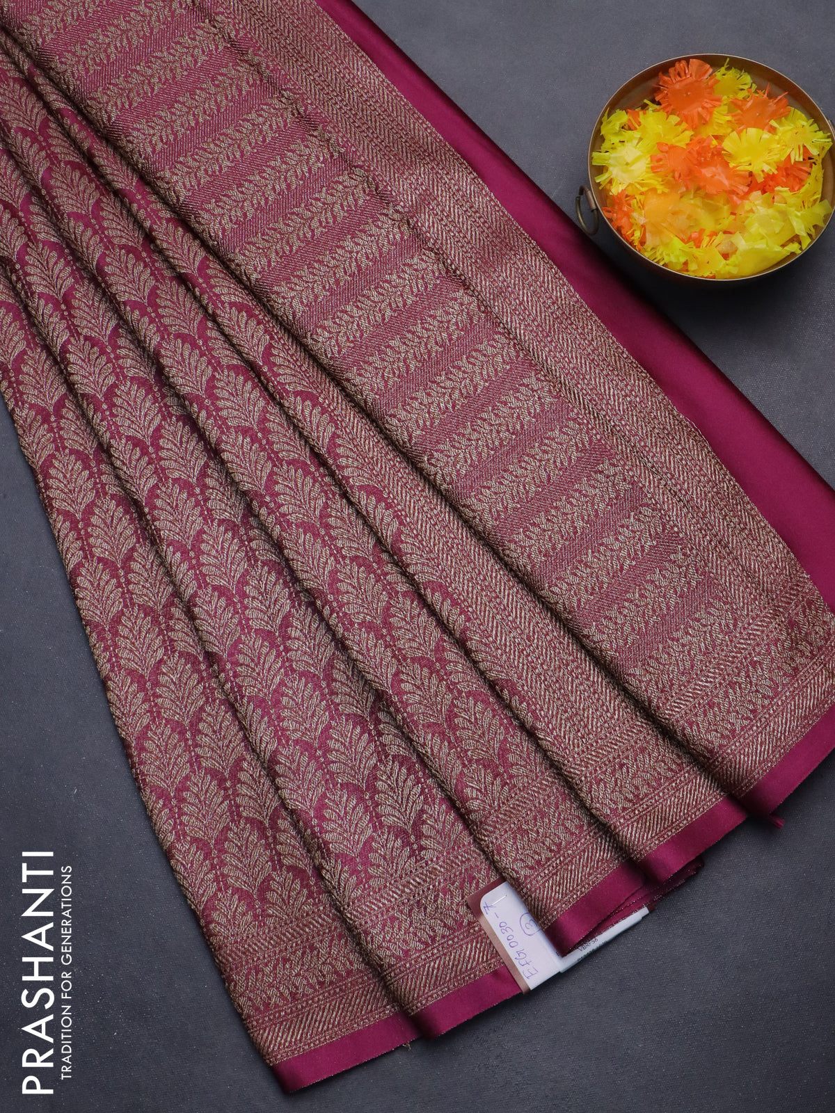 Banarasi semi crepe saree wine shade with allover thread & zari woven brocade weaves and woven border