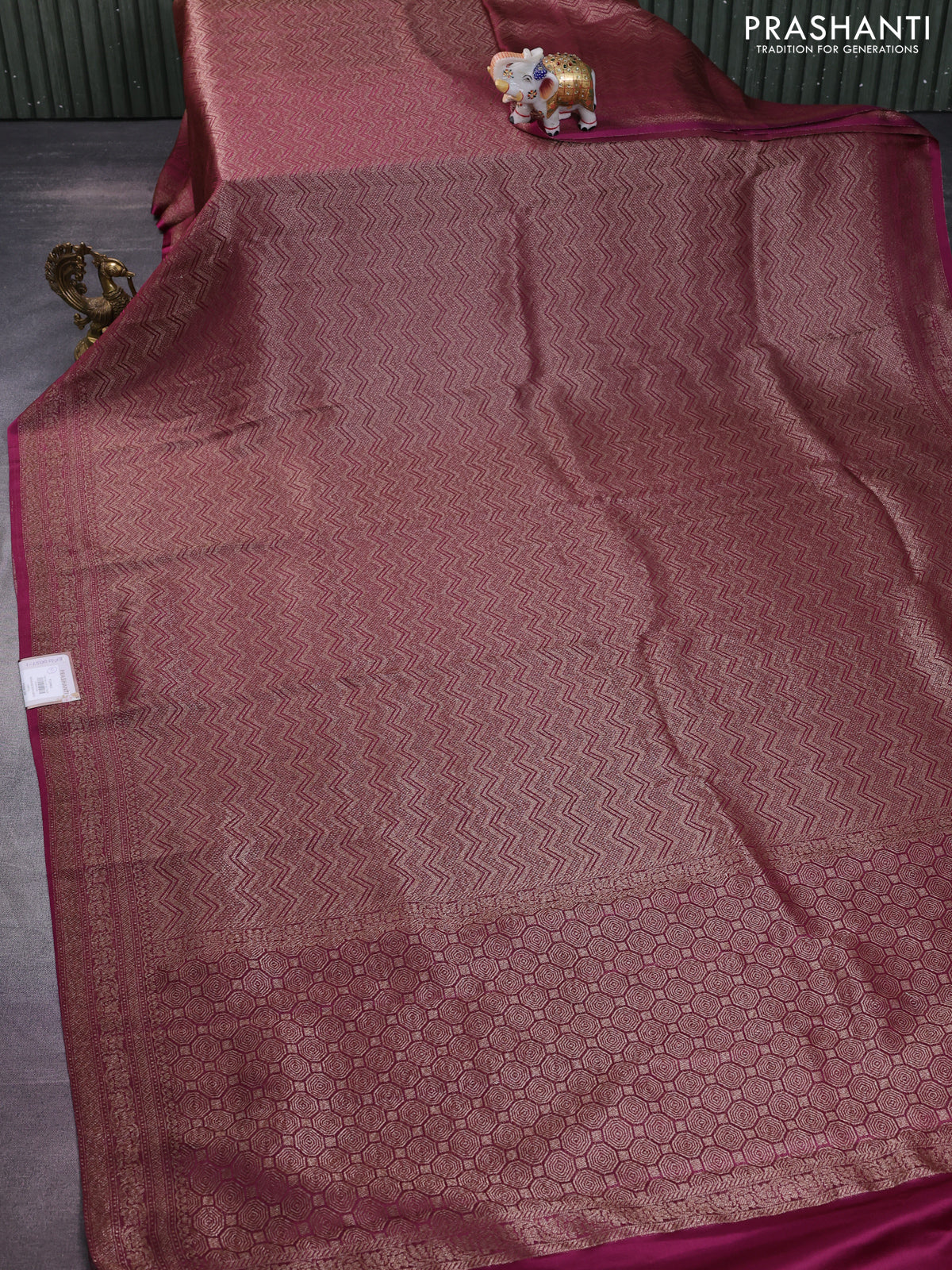 Banarasi semi crepe saree wine shade with allover thread & zari woven brocade weaves and woven border