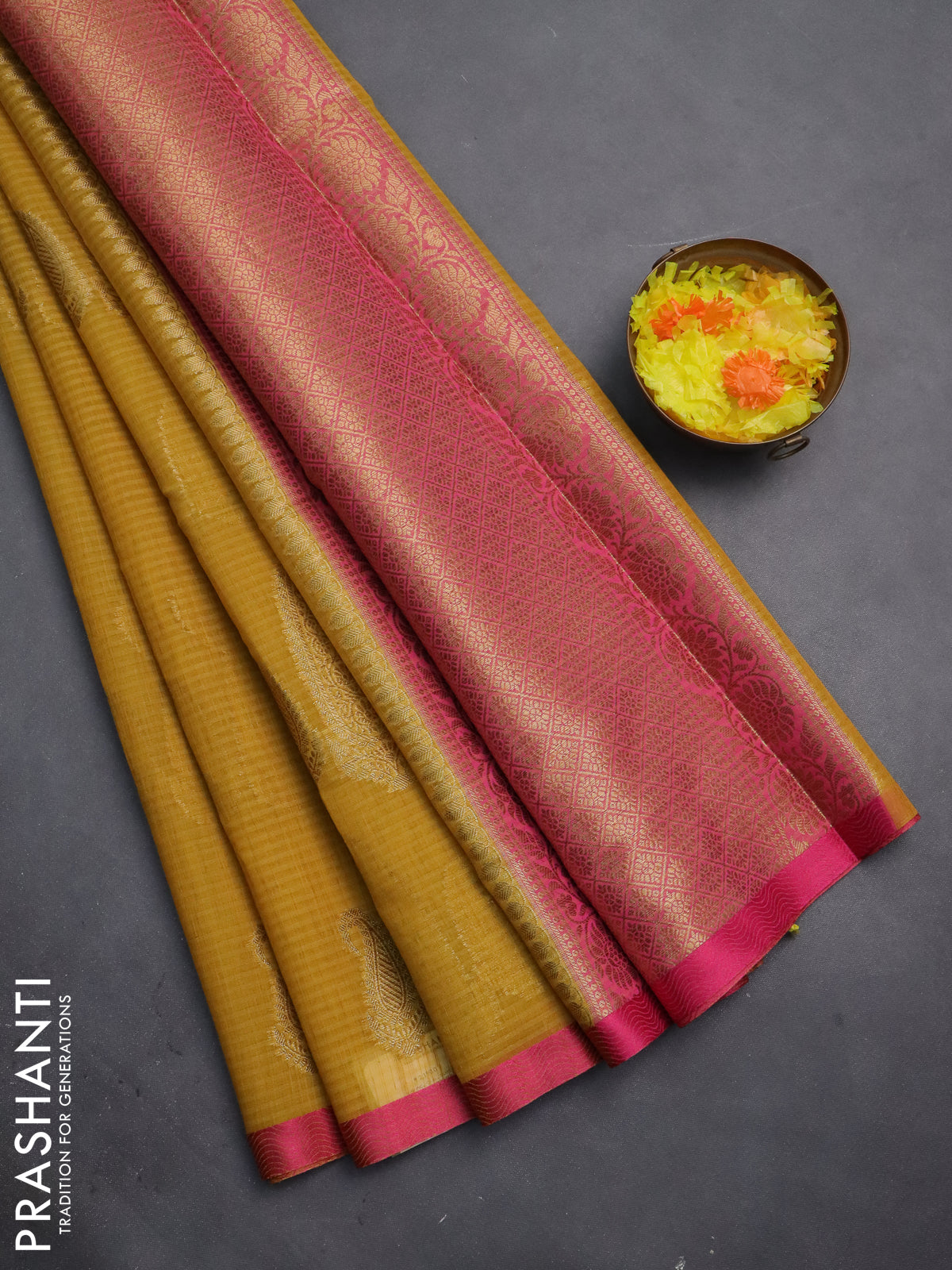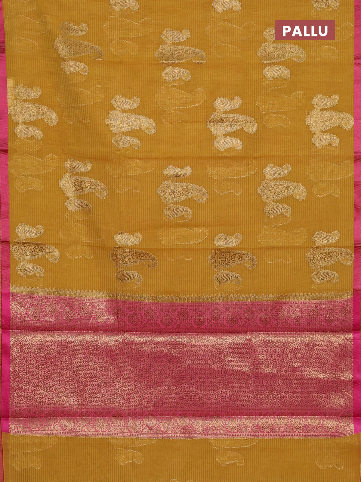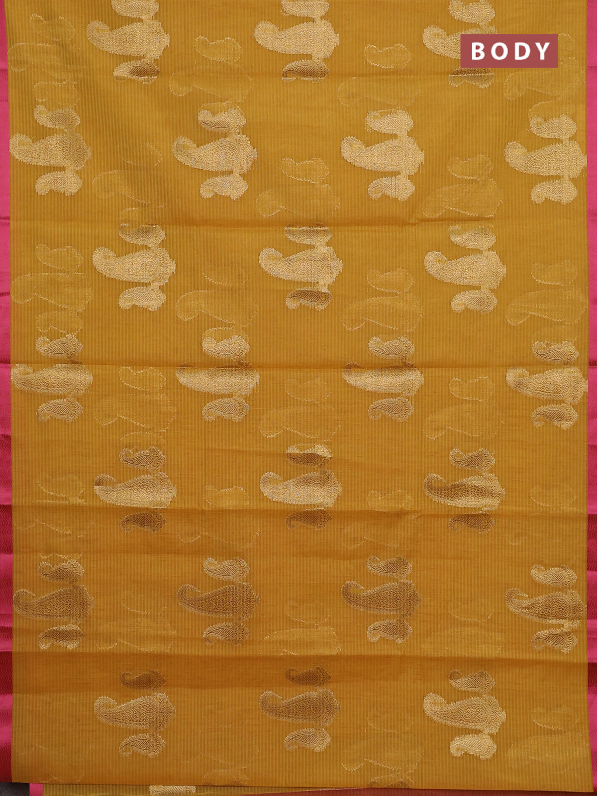 Banarasi semi dupion silk saree mustard yellow and pink with zari woven paisley buttas and thread woven border