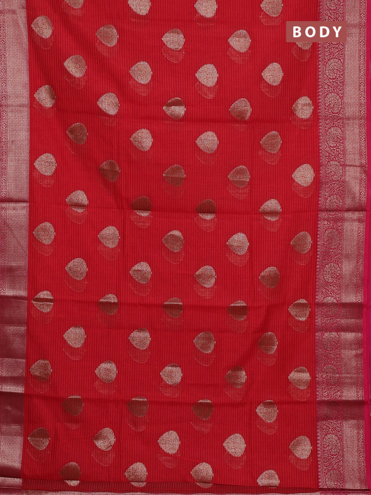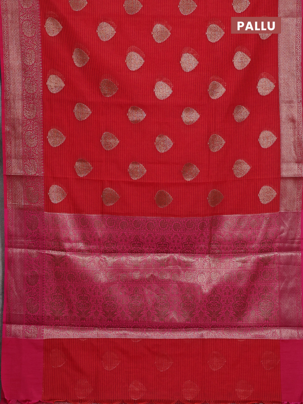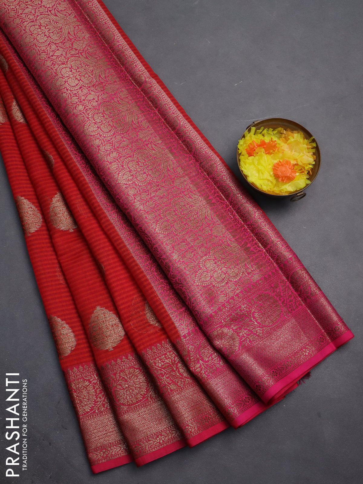 Banarasi semi dupion silk saree reddish orange and pink with zari woven buttas and zari woven border
