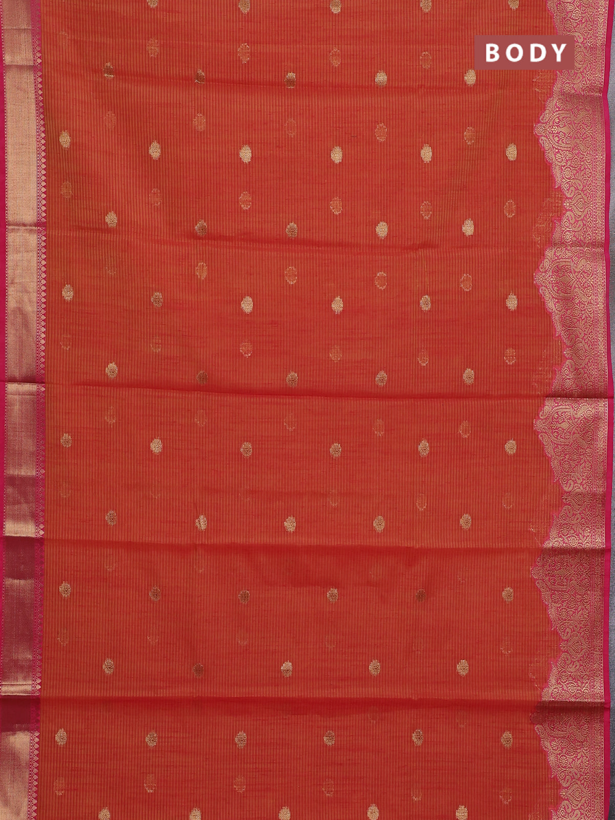 Banarasi semi dupion silk saree sunset orange and pink with zari woven buttas and zari woven border