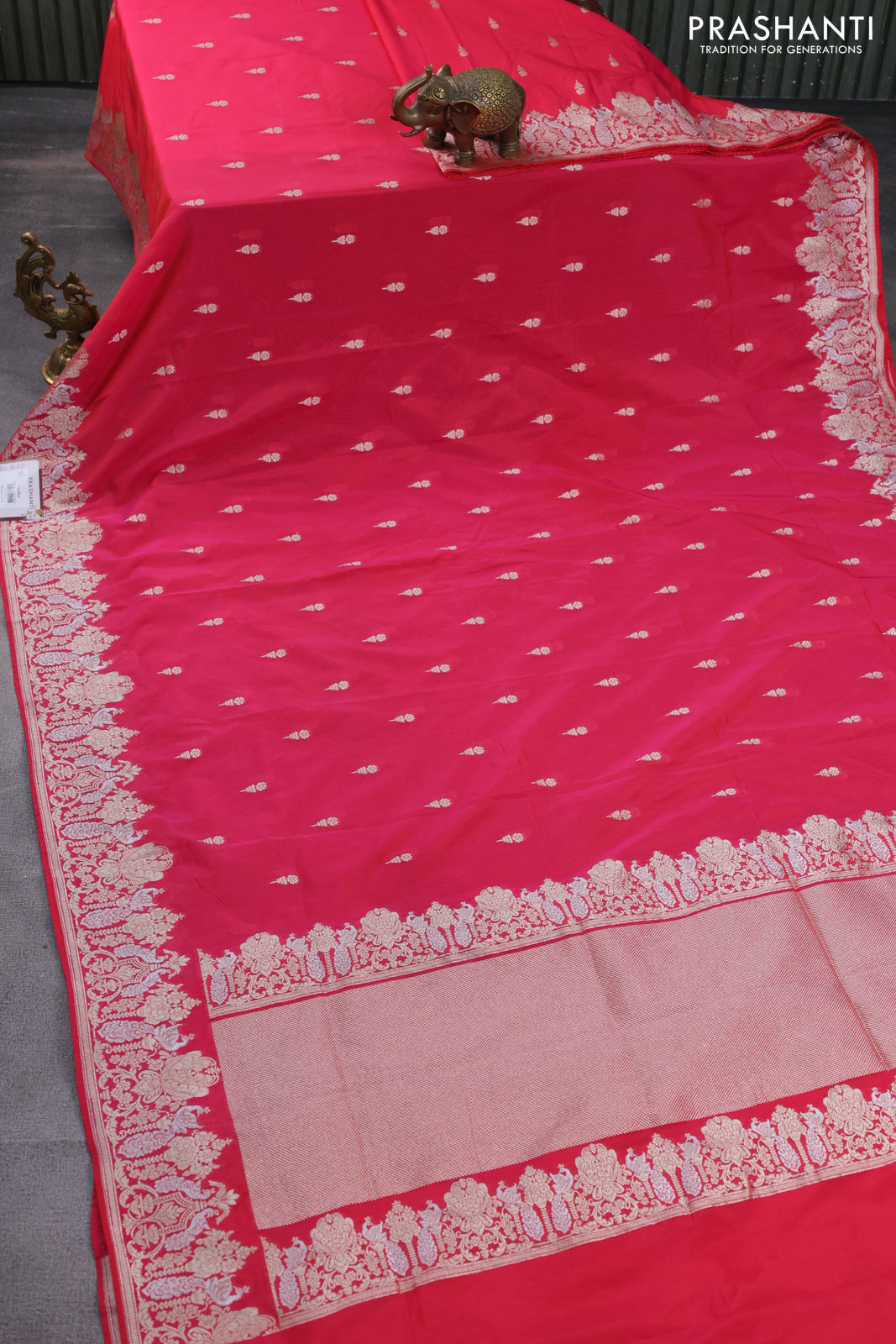 Banarasi semi katan silk saree dual shade of pink with zari woven buttas and zari woven border