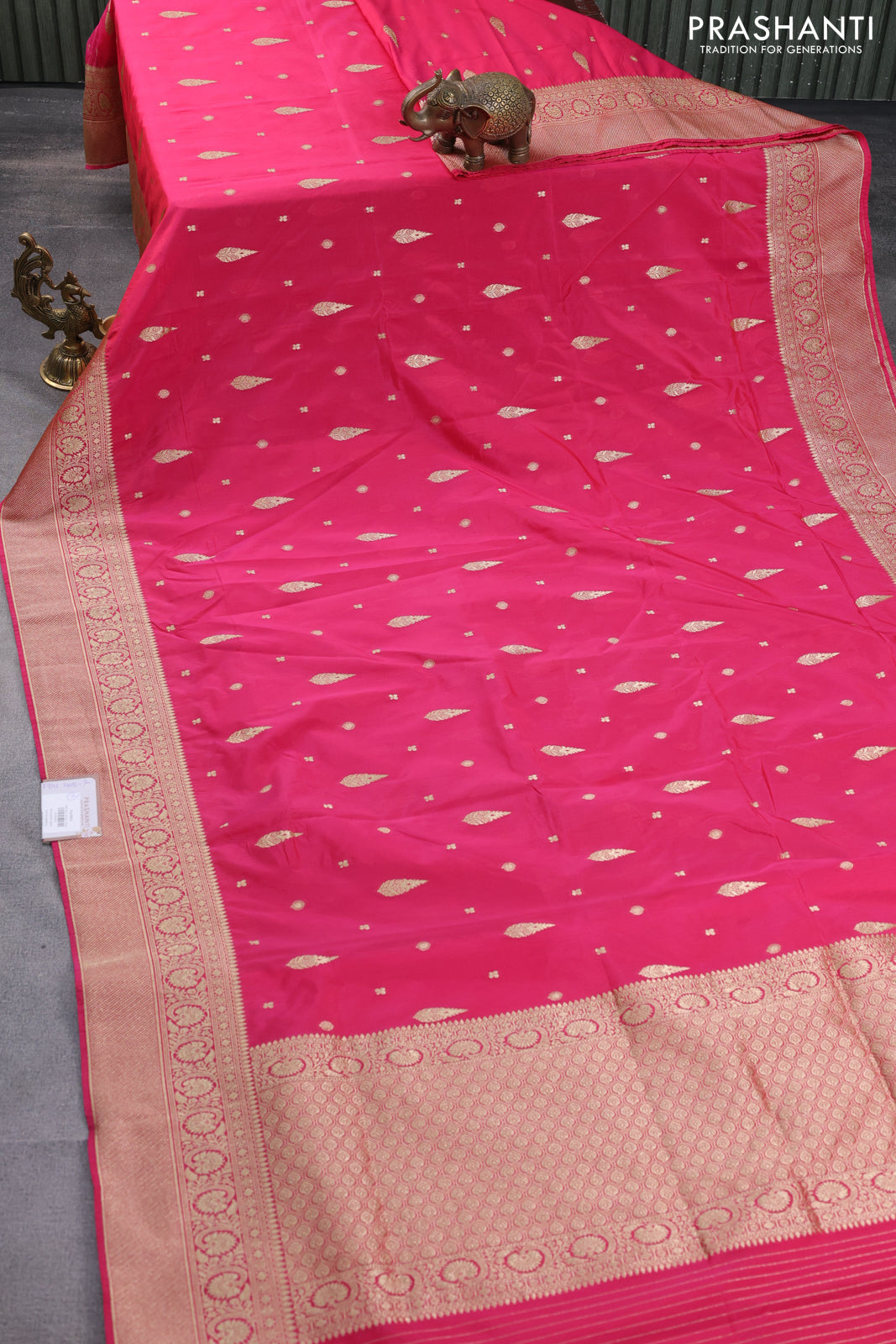 Banarasi semi katan silk saree pink with zari woven buttas and rich zari woven border