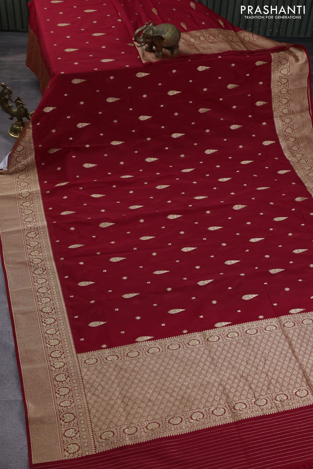 Banarasi semi katan silk saree red with zari woven buttas and rich zari woven border