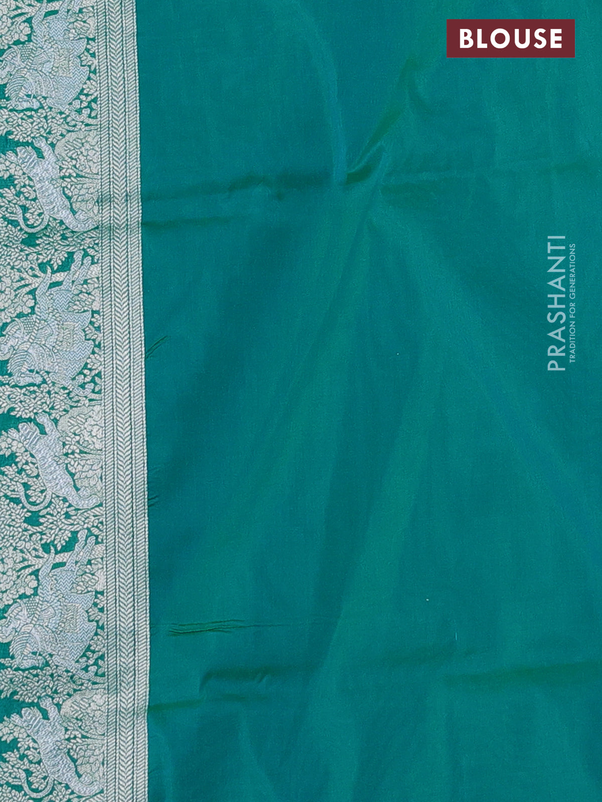 Banarasi semi katan silk saree teal bluish green with silver zari woven buttas and rich zari woven border