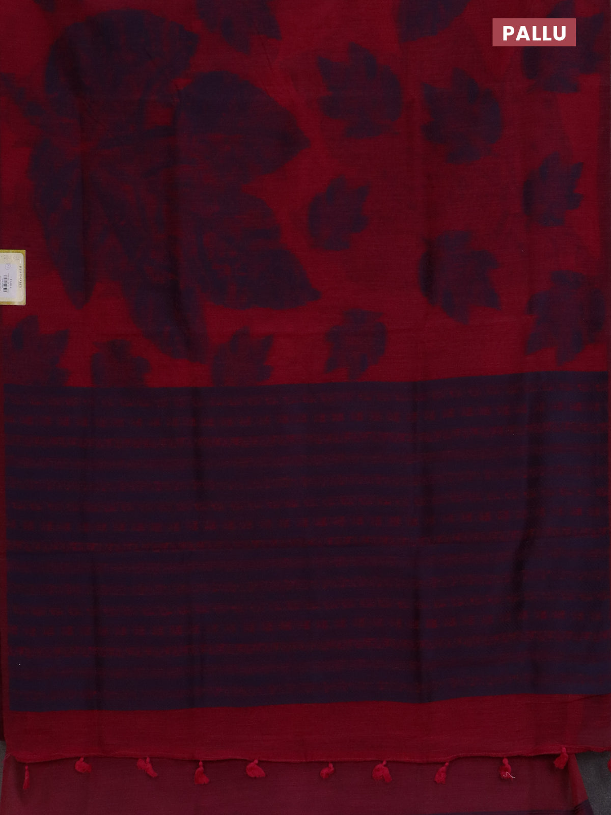Banarasi semi matka saree dark pink with allover thread woven leaf butta weaves in borderless style