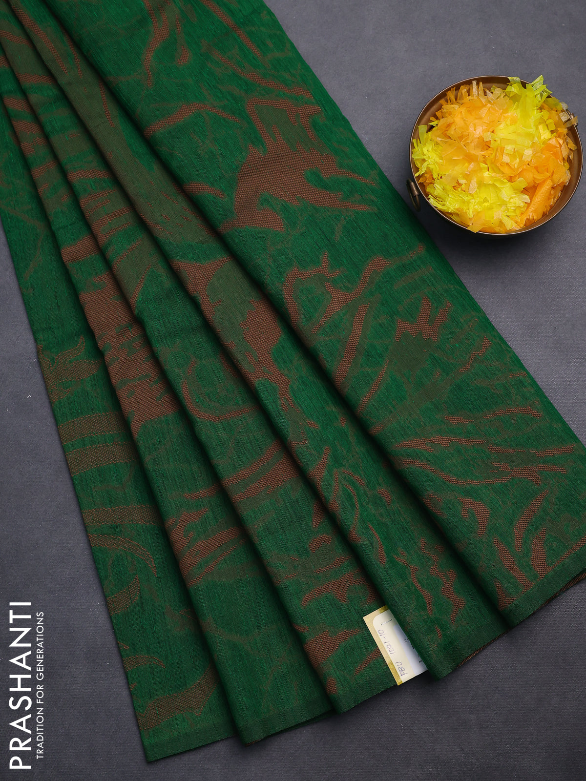 Banarasi semi matka saree green with allover thread weaves in borderless style