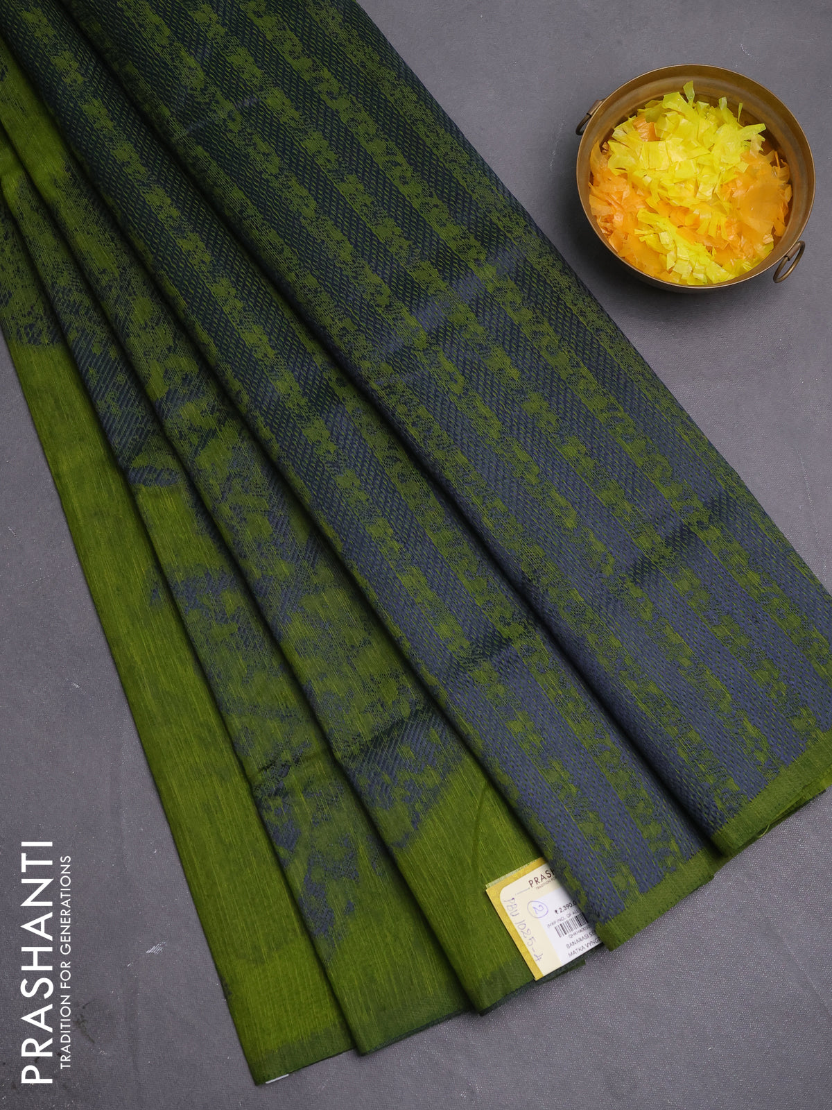 Banarasi semi matka saree light green with allover thread woven leaf butta weaves in borderless style