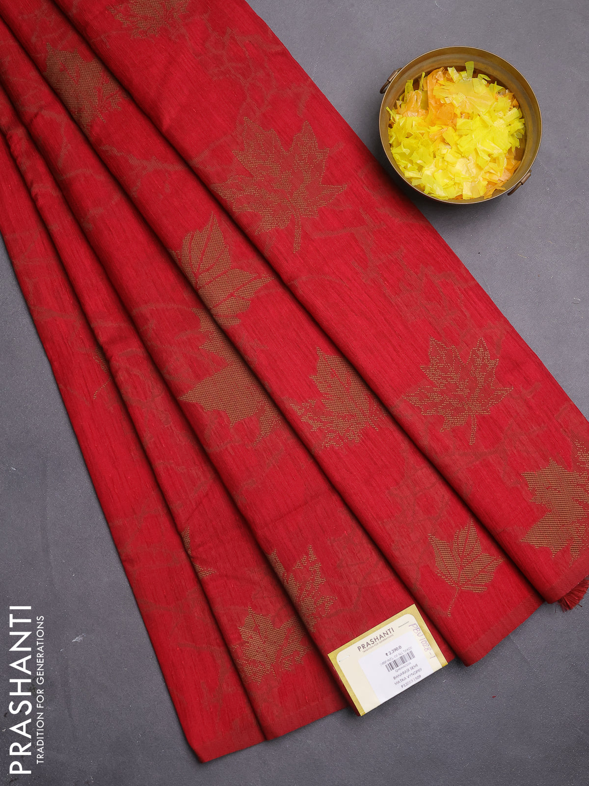 Banarasi semi matka saree maroon with allover leaf thread woven buttas in borderless style