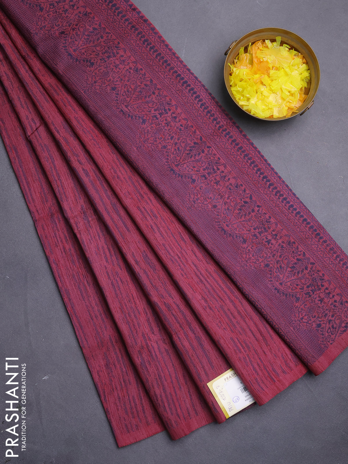 Banarasi semi matka saree maroon with allover thread weaves in borderless style