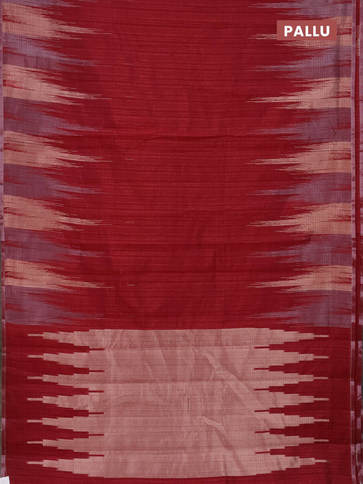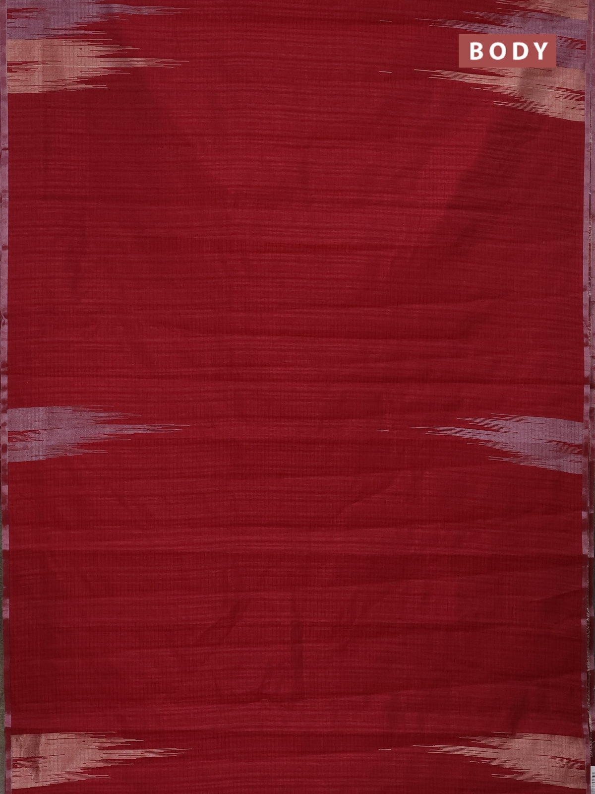 Banarasi semi matka saree maroon with plain body and temple design zari woven border