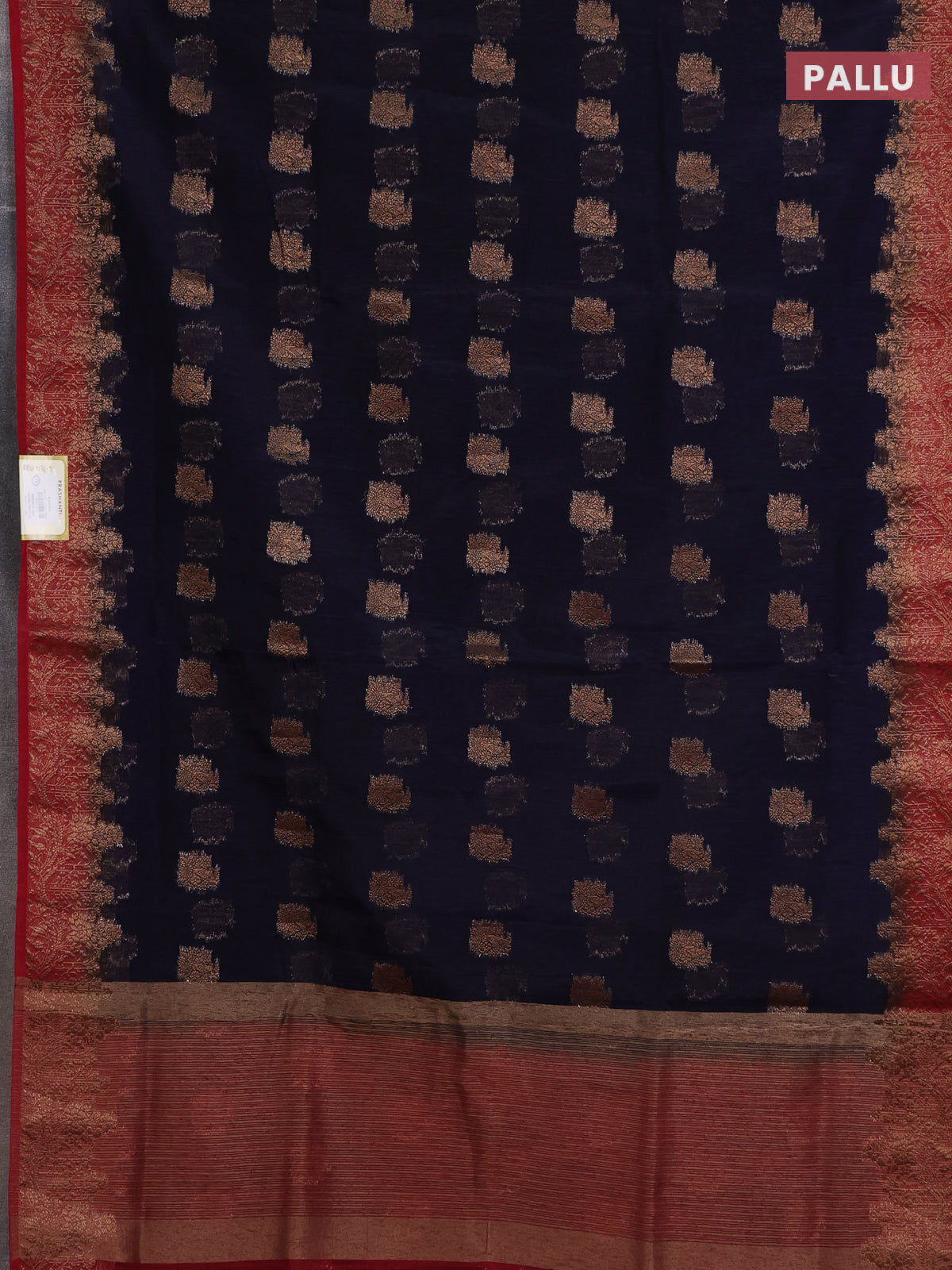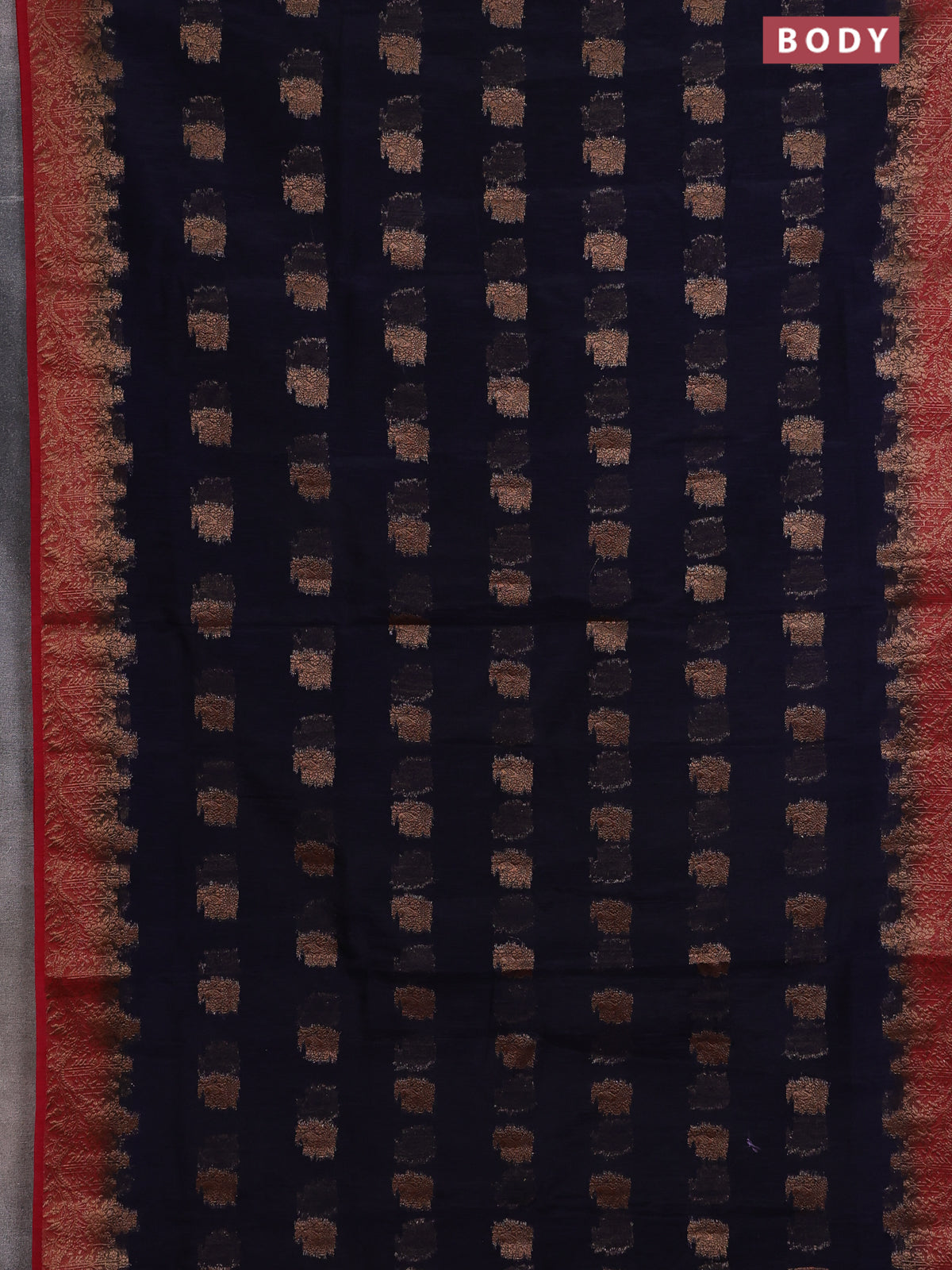 Banarasi semi matka saree navy blue and red with thread & zari woven buttas and banarastyle border