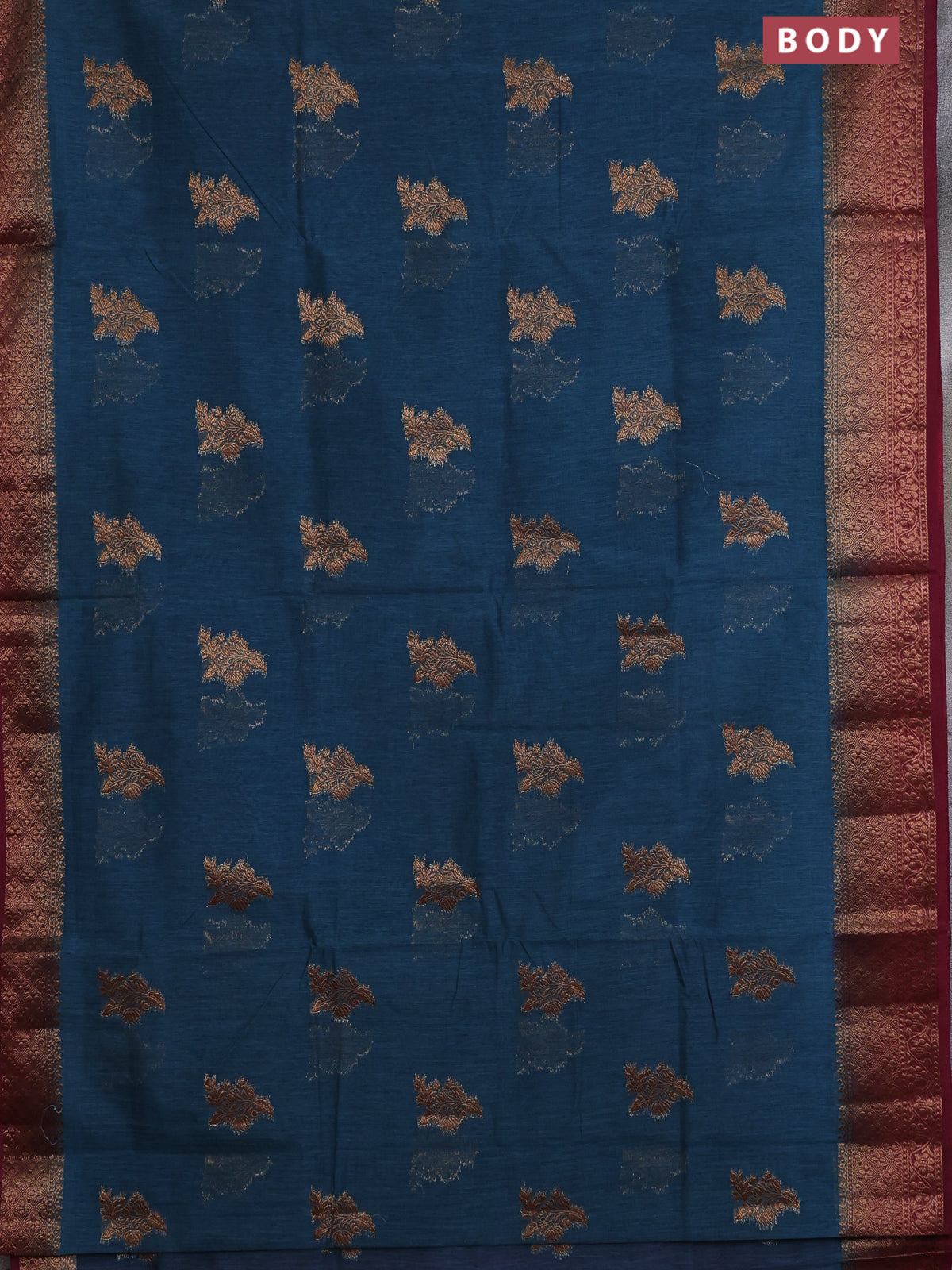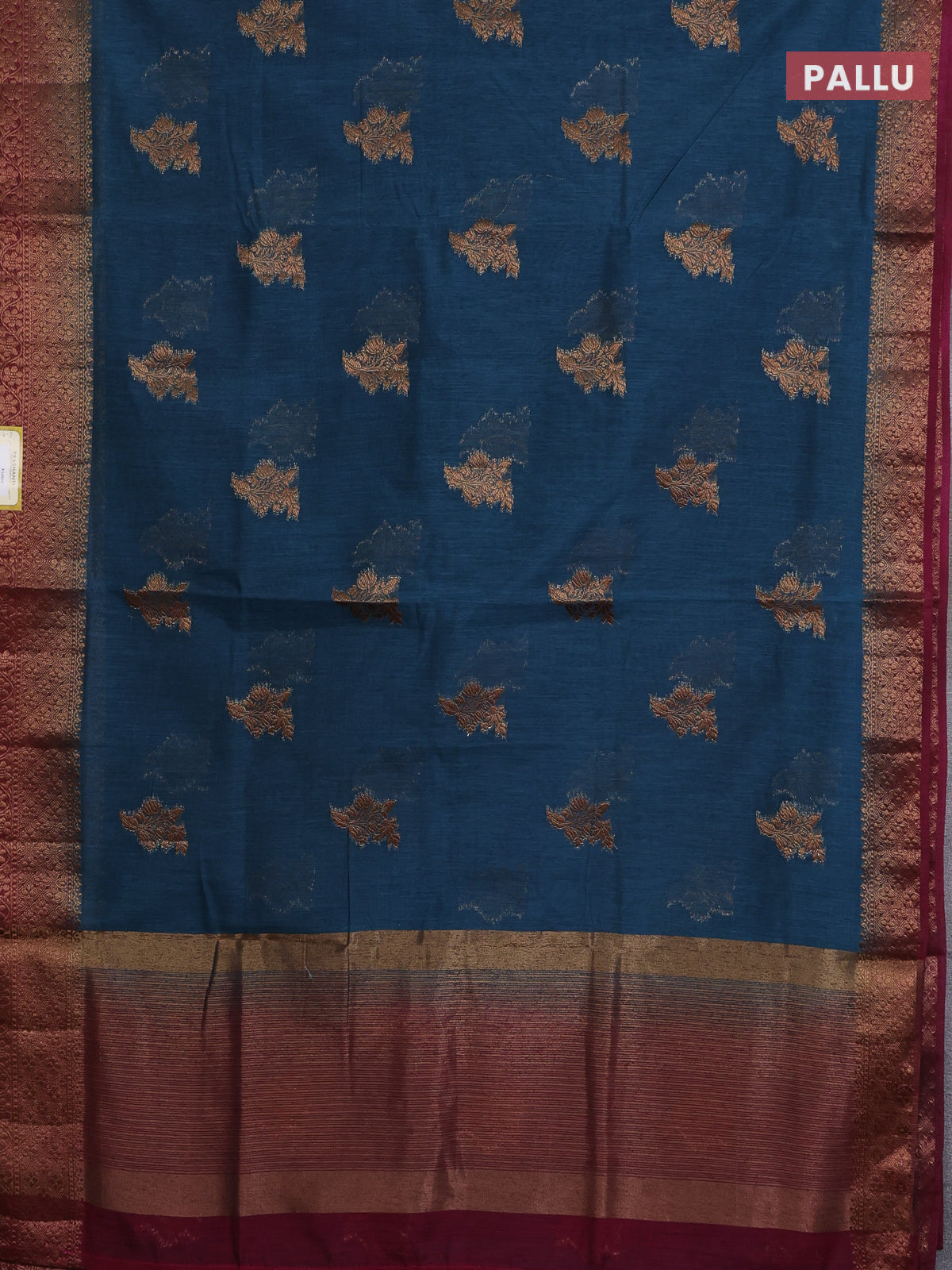 Banarasi semi matka saree peacock blue and dark magenta with thread & zari woven buttas and banarasi style border
