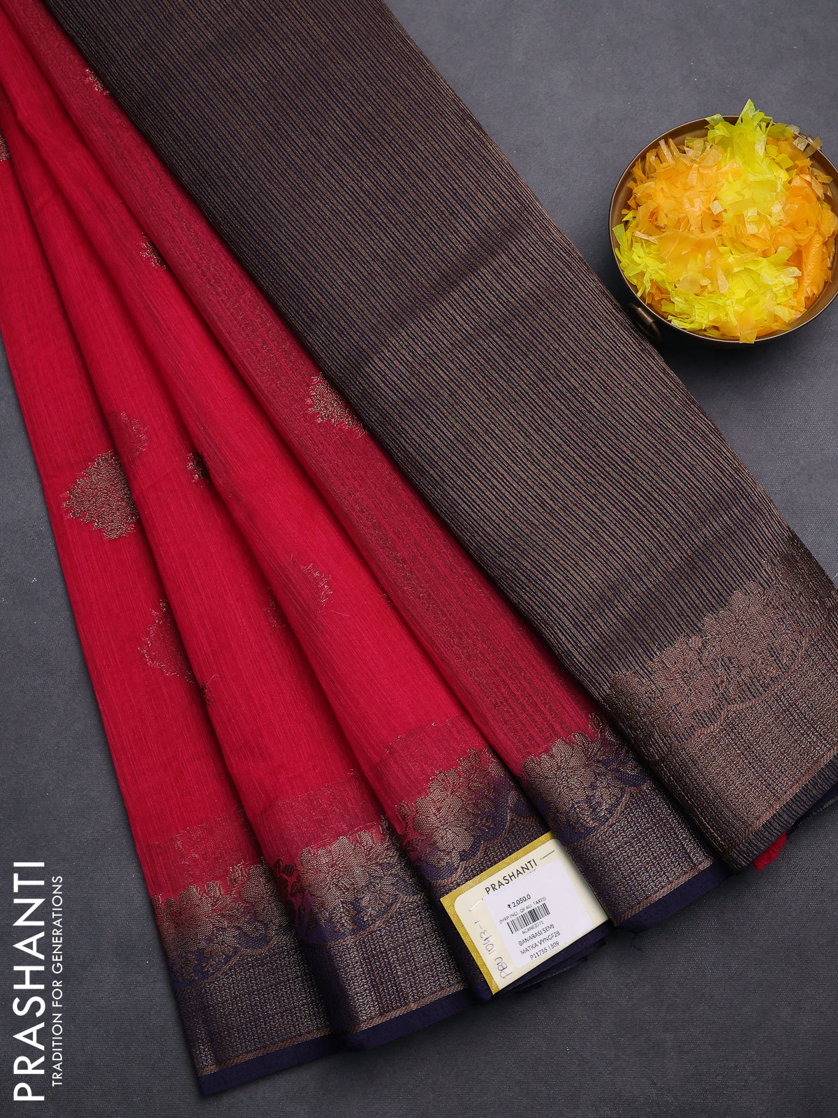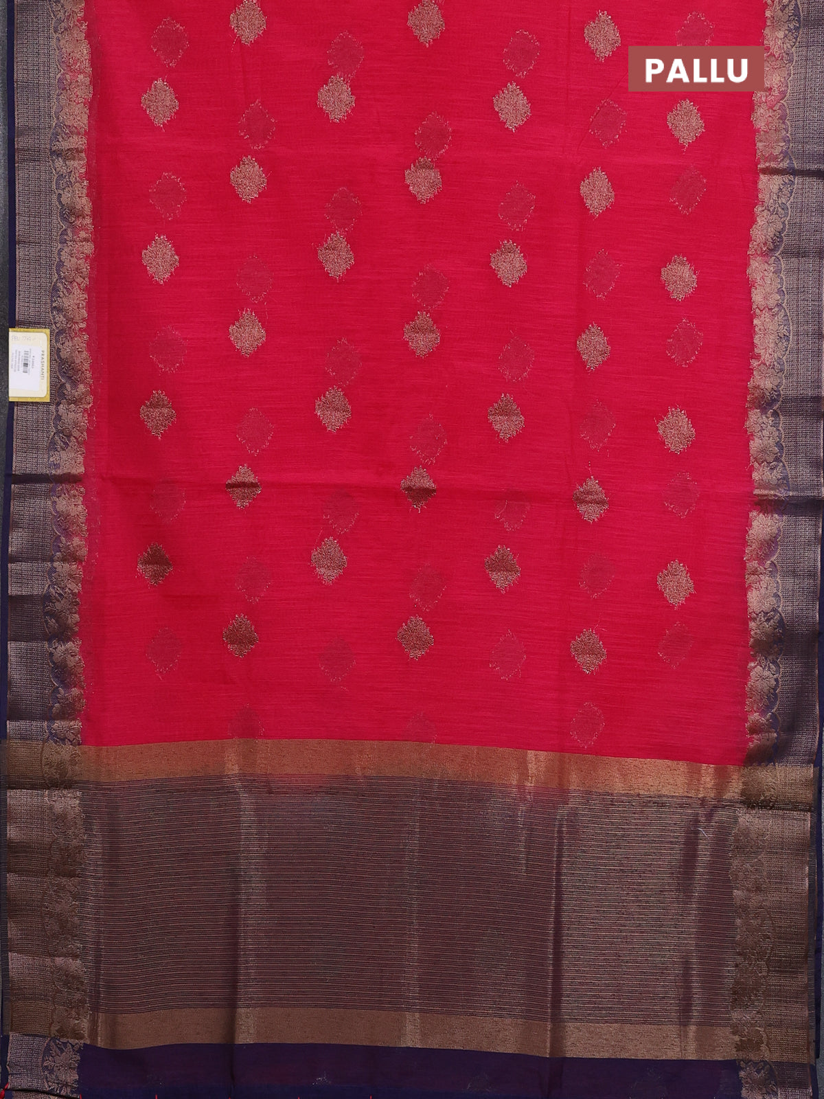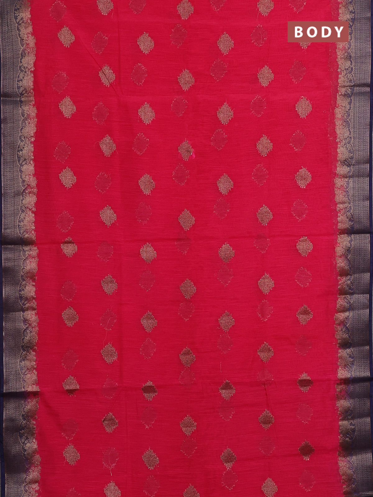 Banarasi semi matka saree pink and navy blue with thread & zari woven buttas and banarasi style border