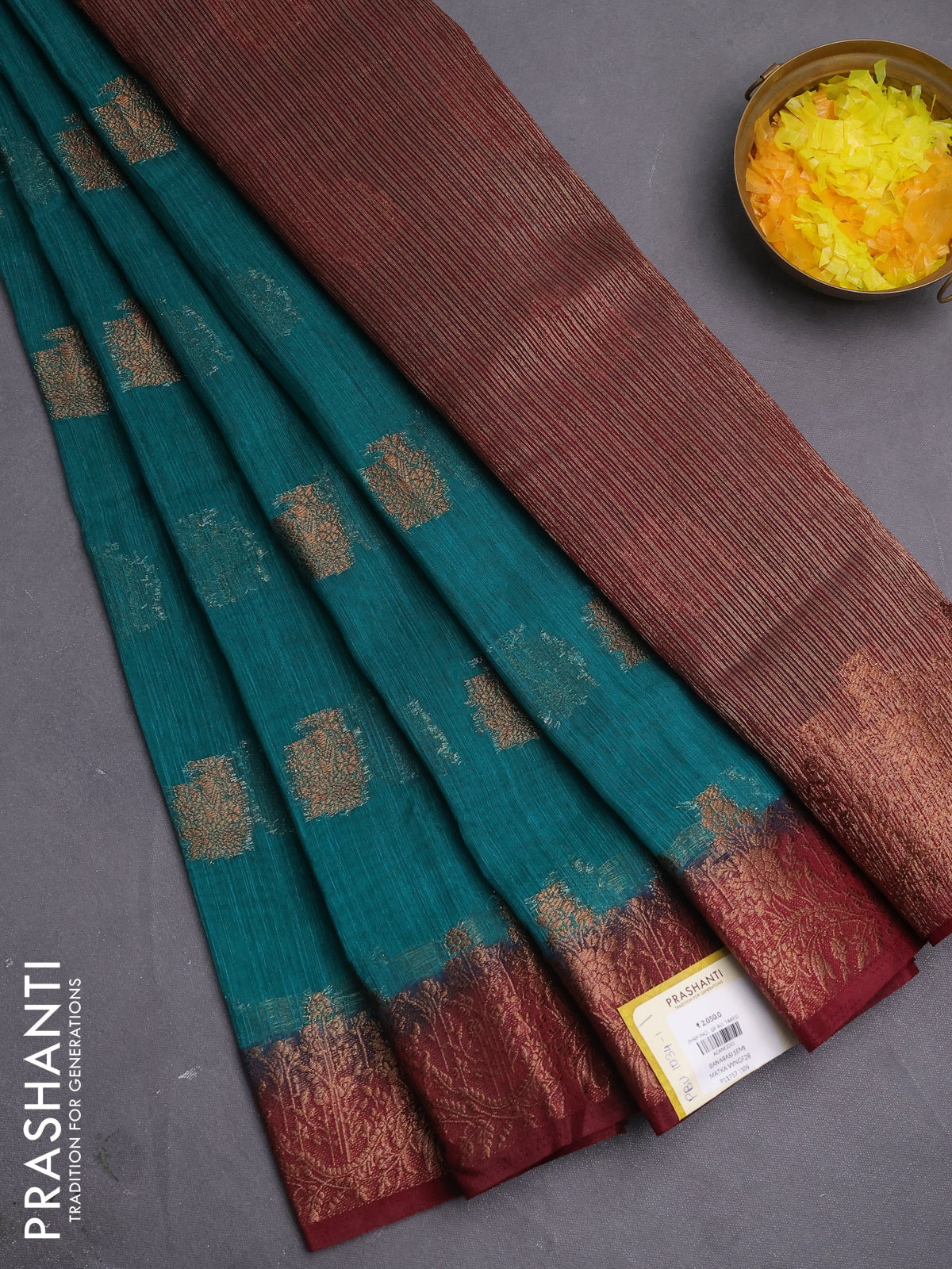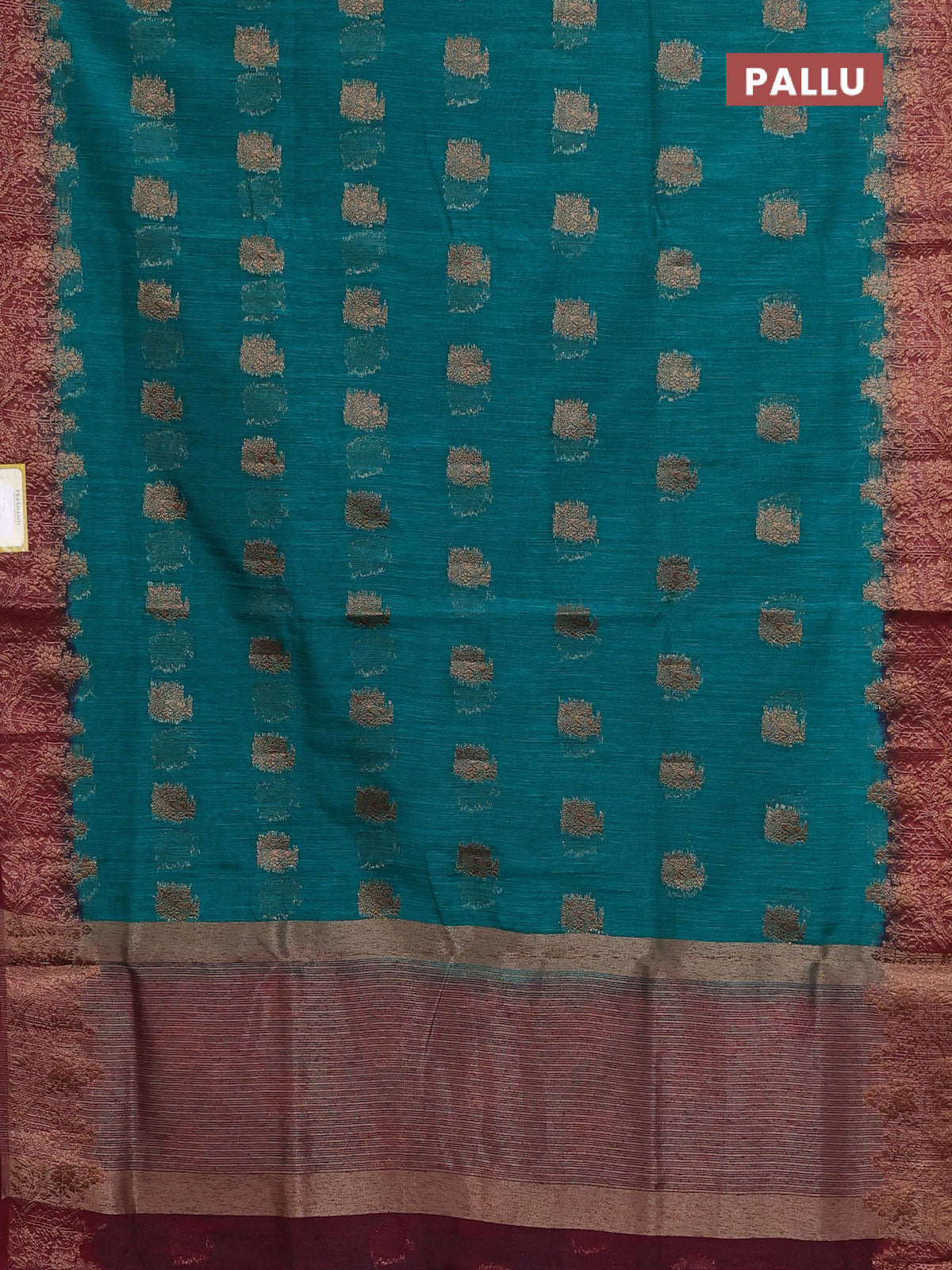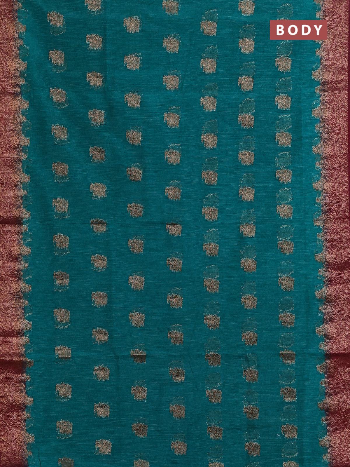 Banarasi semi matka saree teal green and maroon with thread & zari woven buttas and banarastyle border