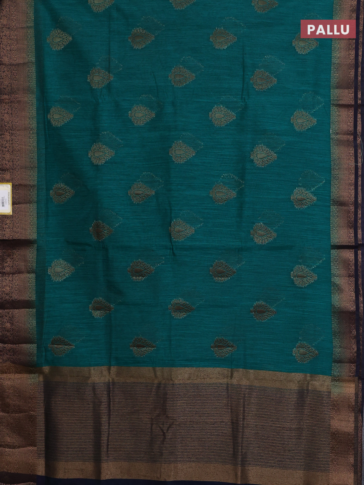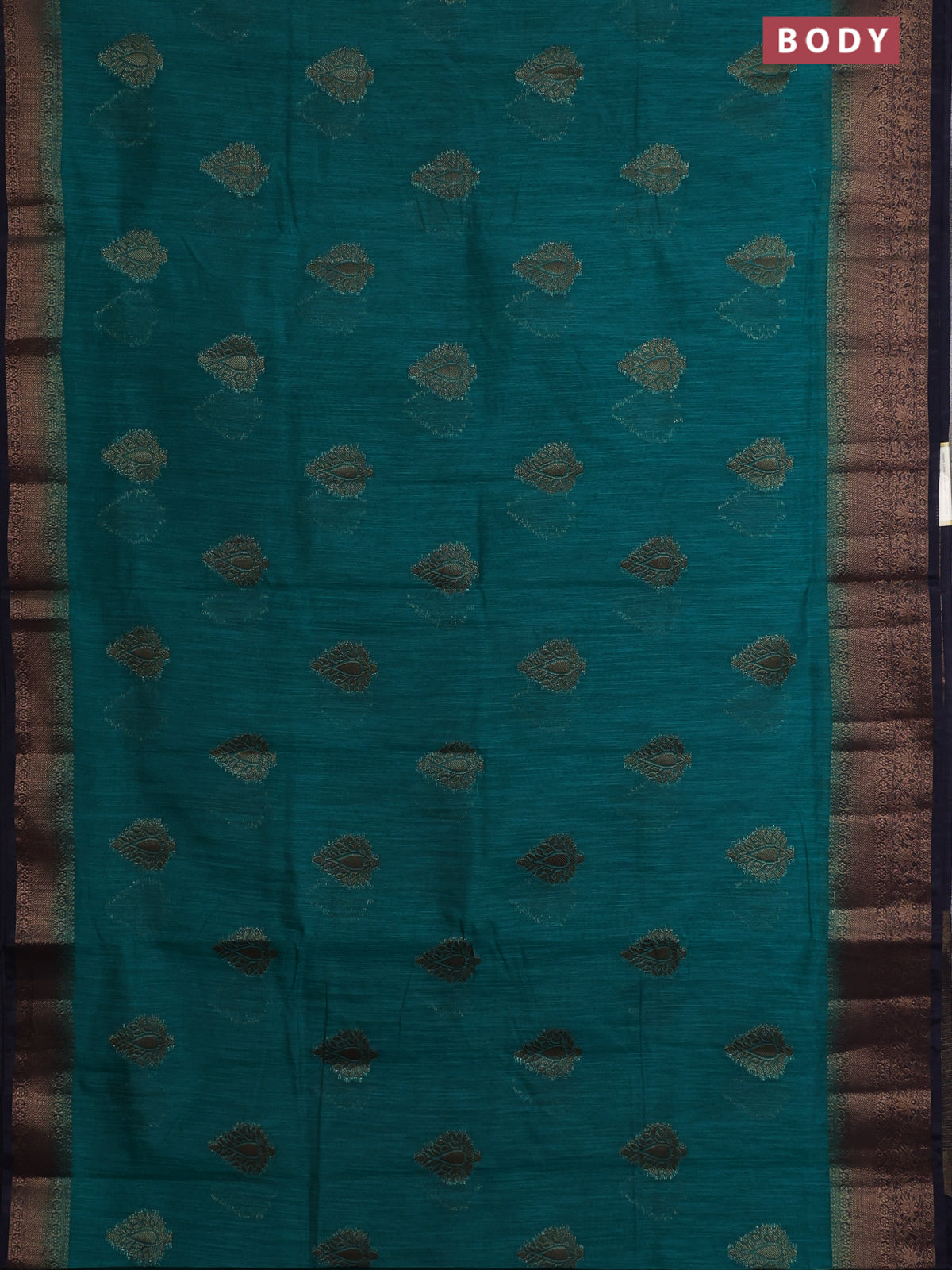 Banarasi semi matka saree teal green and navy blue with thread & zari woven buttas and banarasi style border