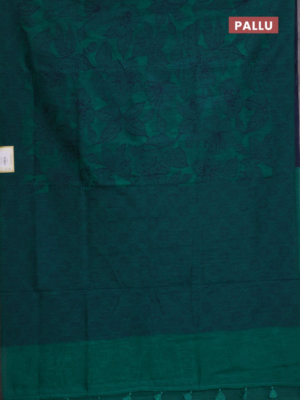 Banarasi semi matka saree teal green with allover thread floral weaves and thread woven border