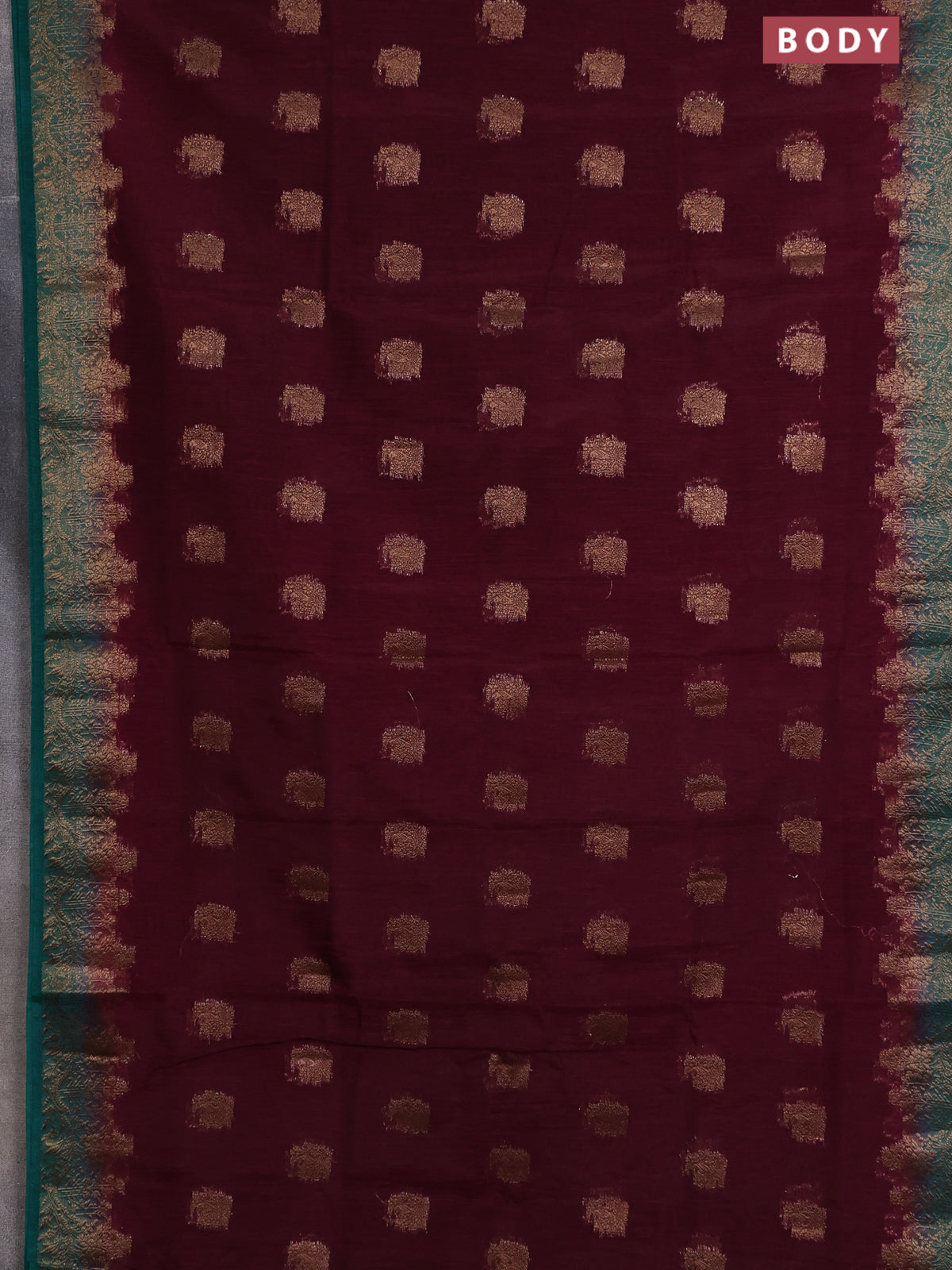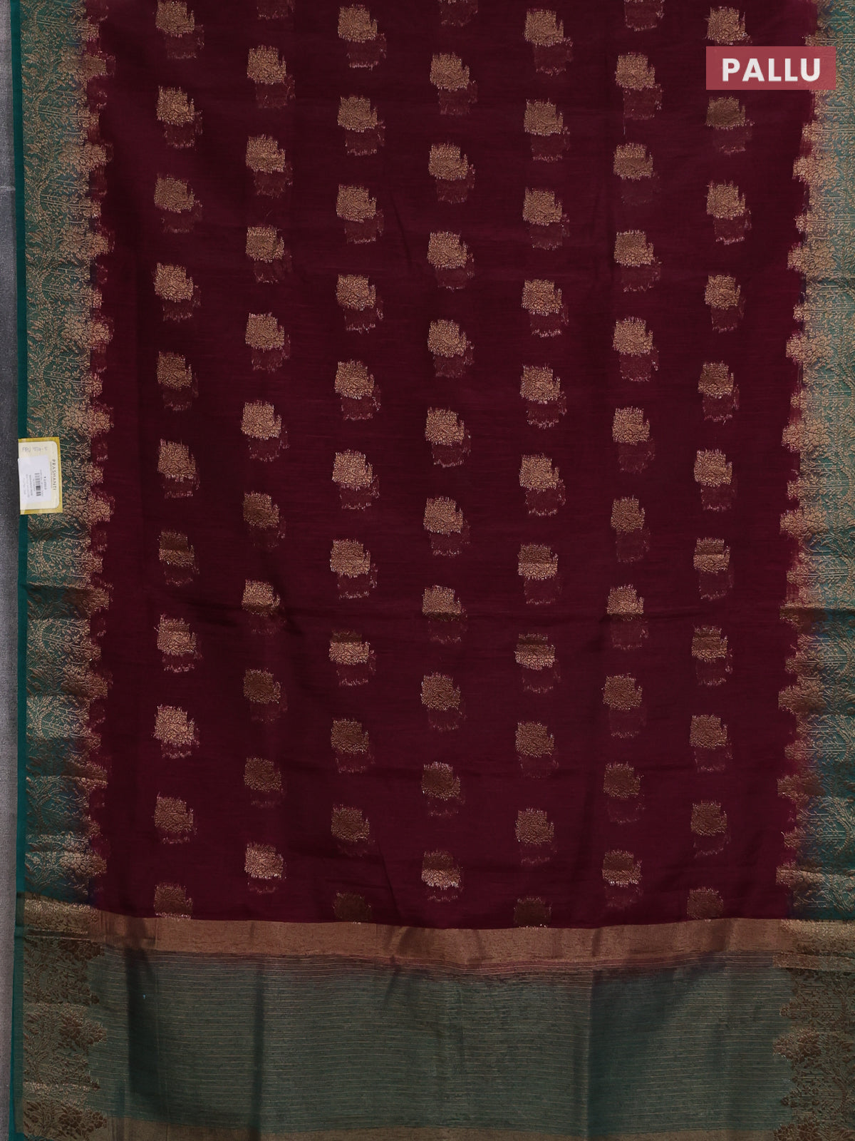 Banarasi semi matka saree wine shade and green with thread & zari woven buttas and banarastyle border