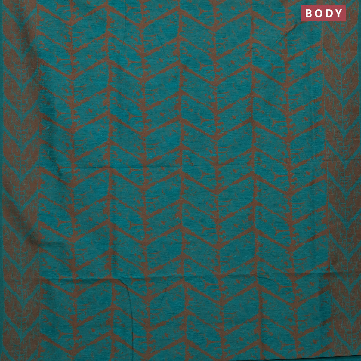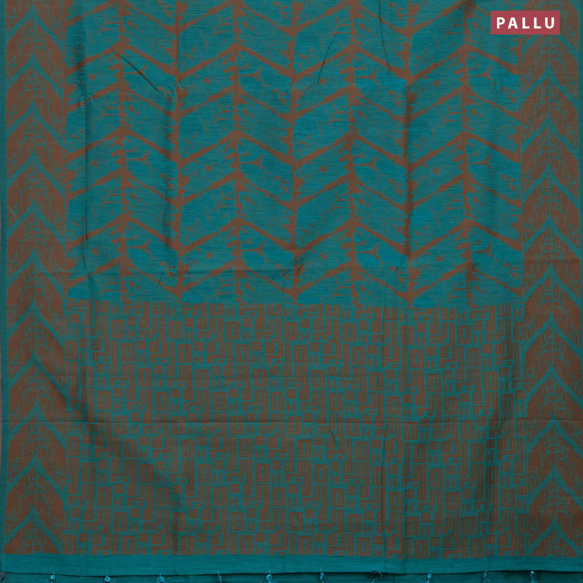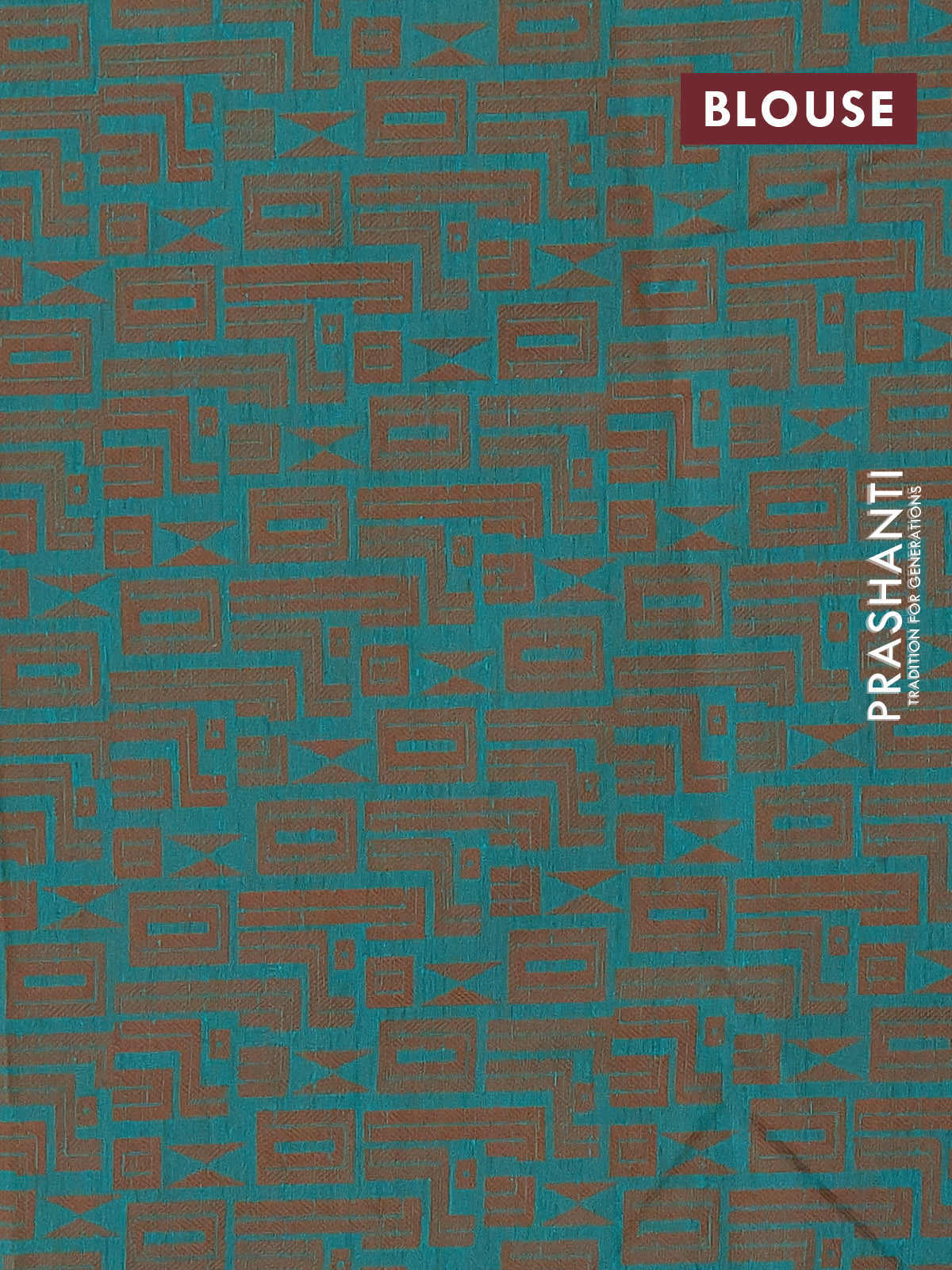 Banarasi semi matka silk saree teal green and brown with allover thread weaves and woven border
