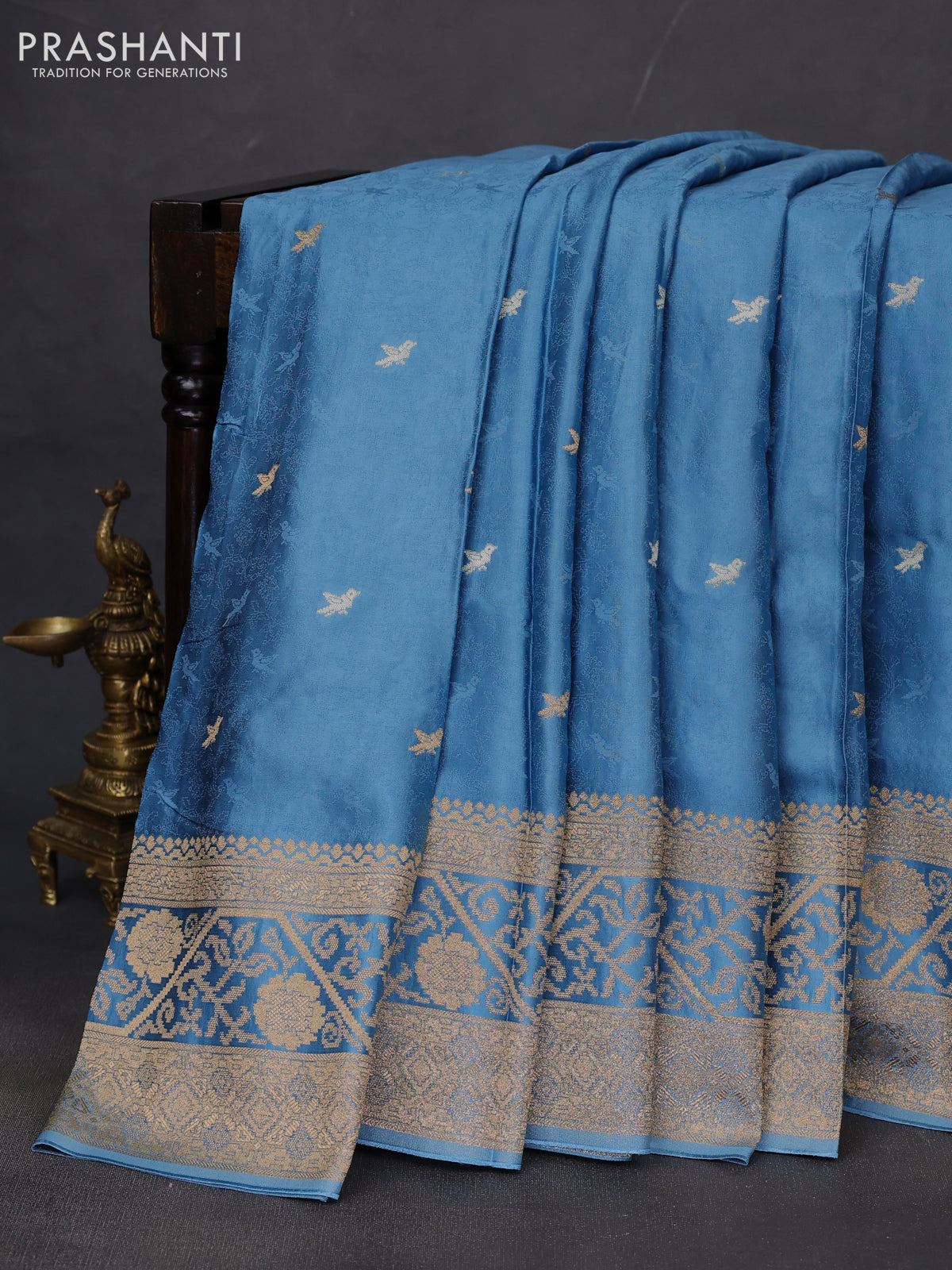 Banarasi semi mushru silk saree pastel blue with allover self emboss & zari buttas and zari woven border