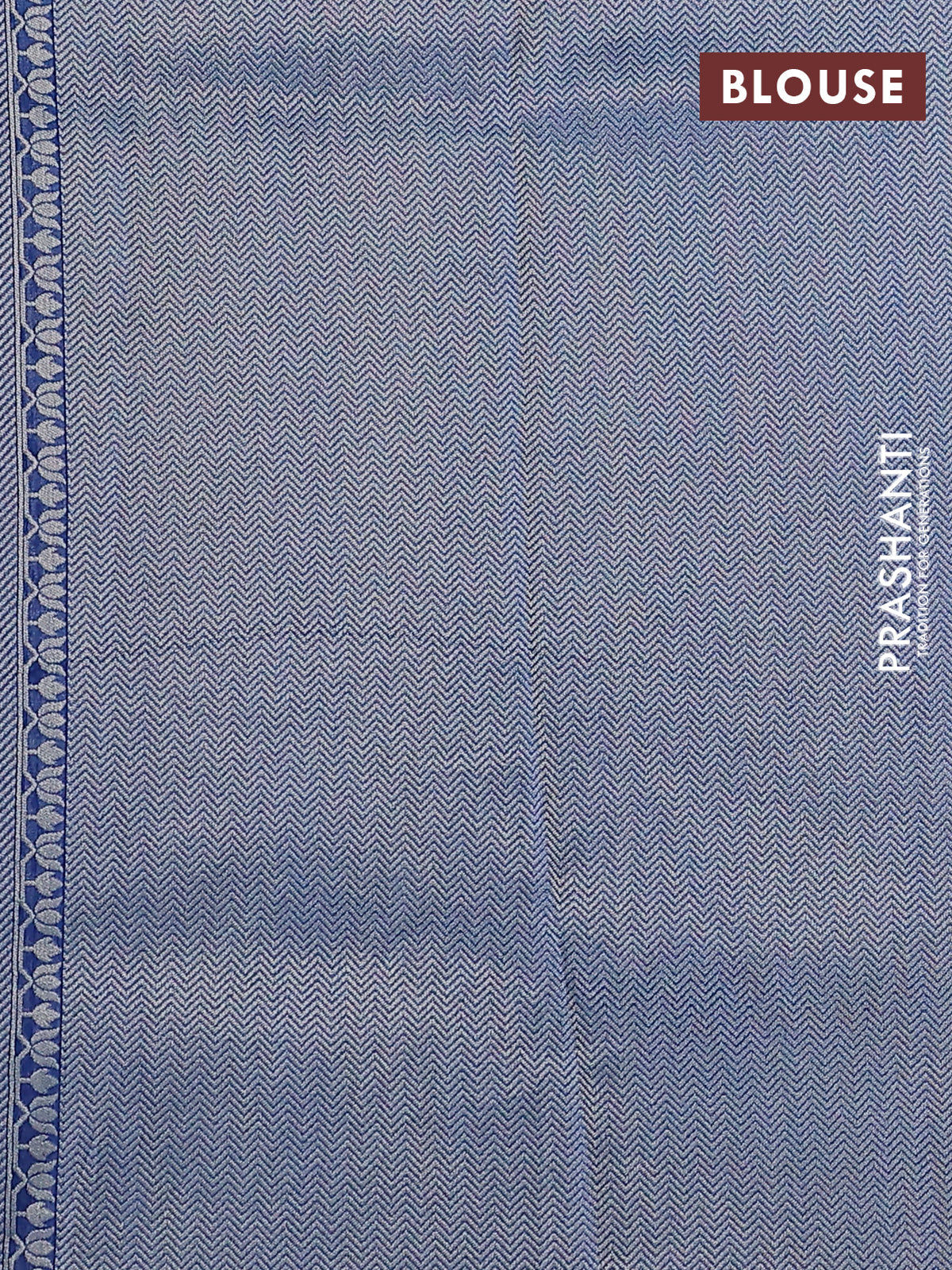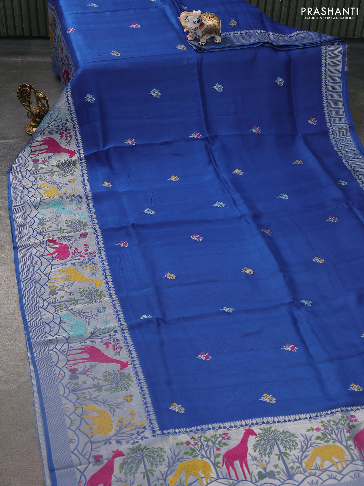 Banarasi semi raw silk saree blue with thread & silver zari buttas and long zari woven paithani style border
