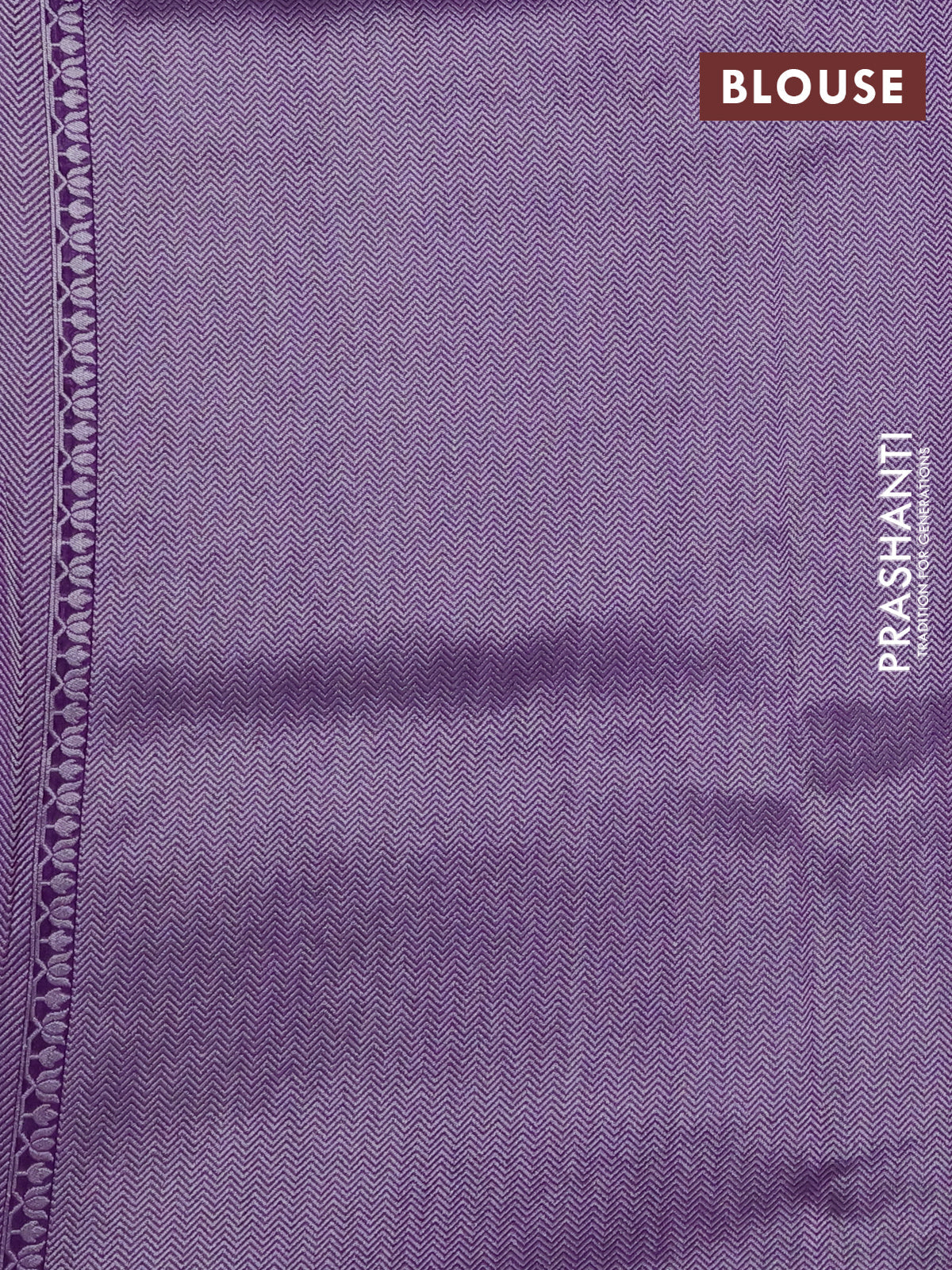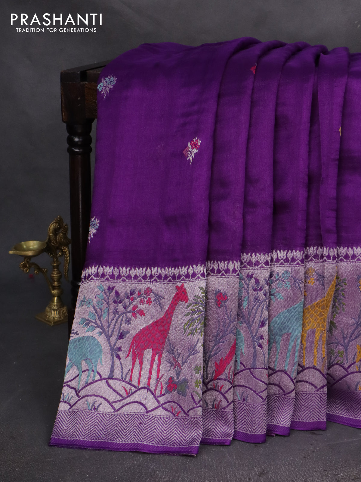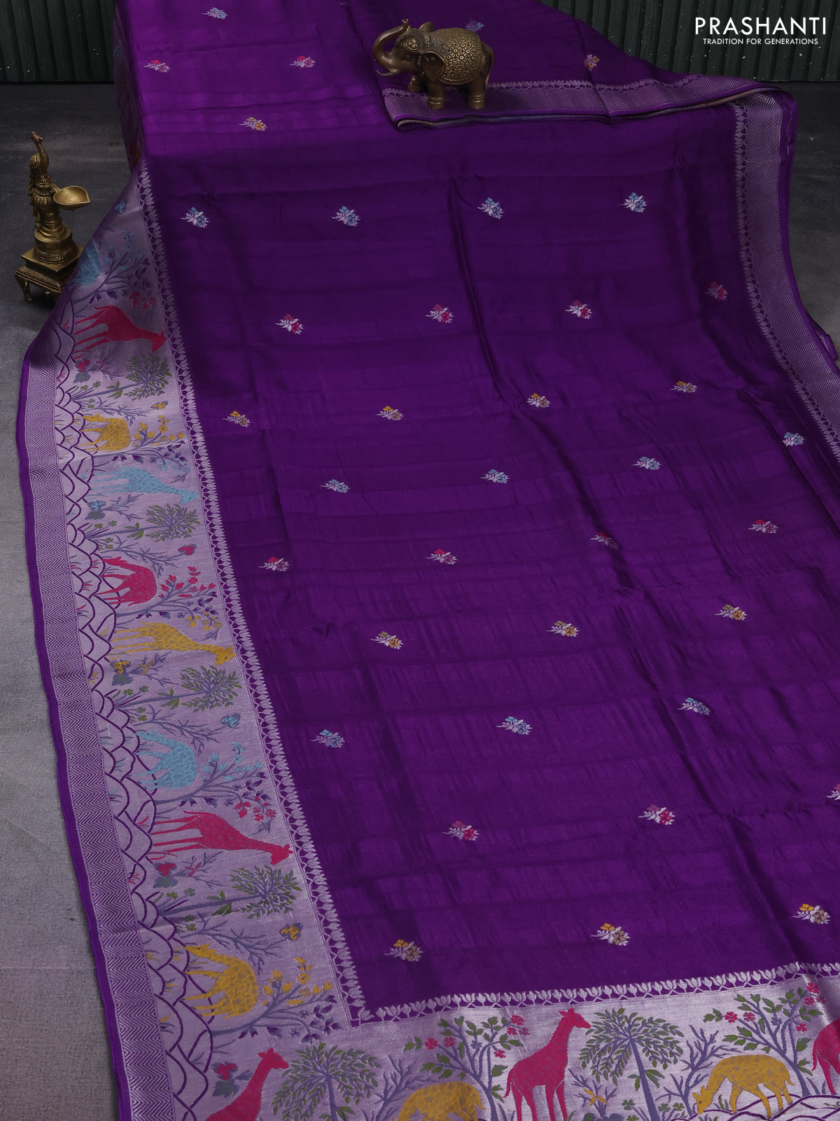Banarasi semi raw silk saree violet with thread & silver zari buttas and long zari woven paithani style border