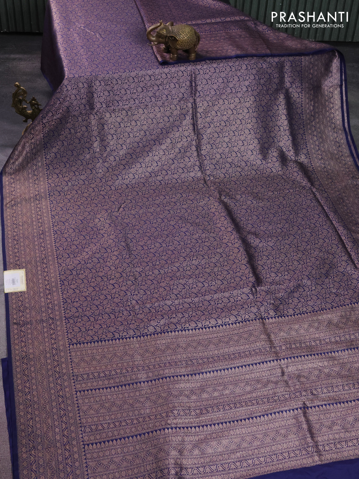 Banarasi semi silk saree blue with allover thread & zari weaves and woven border