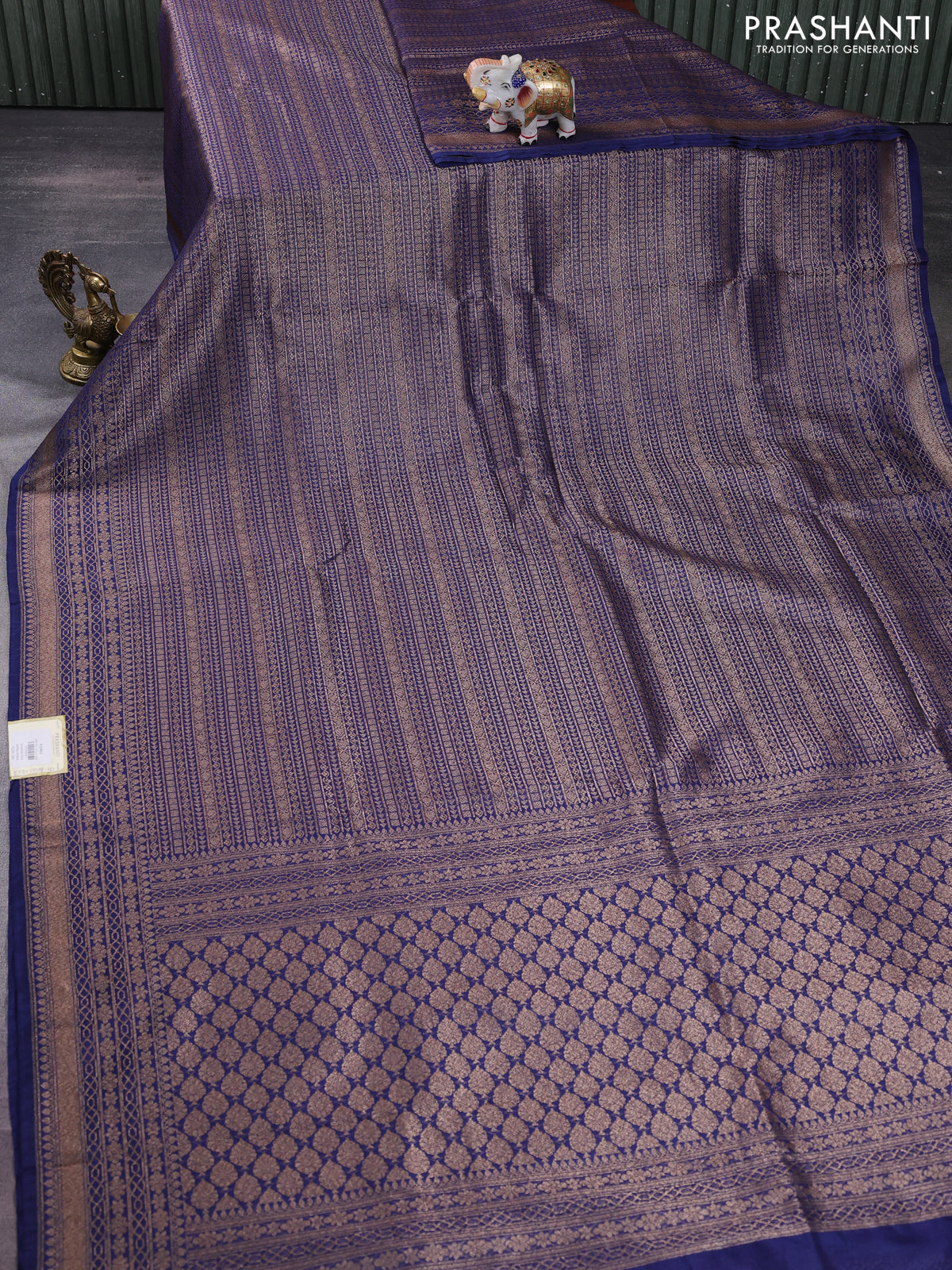 Banarasi semi silk saree blue with allover thread & zari weaves and woven border