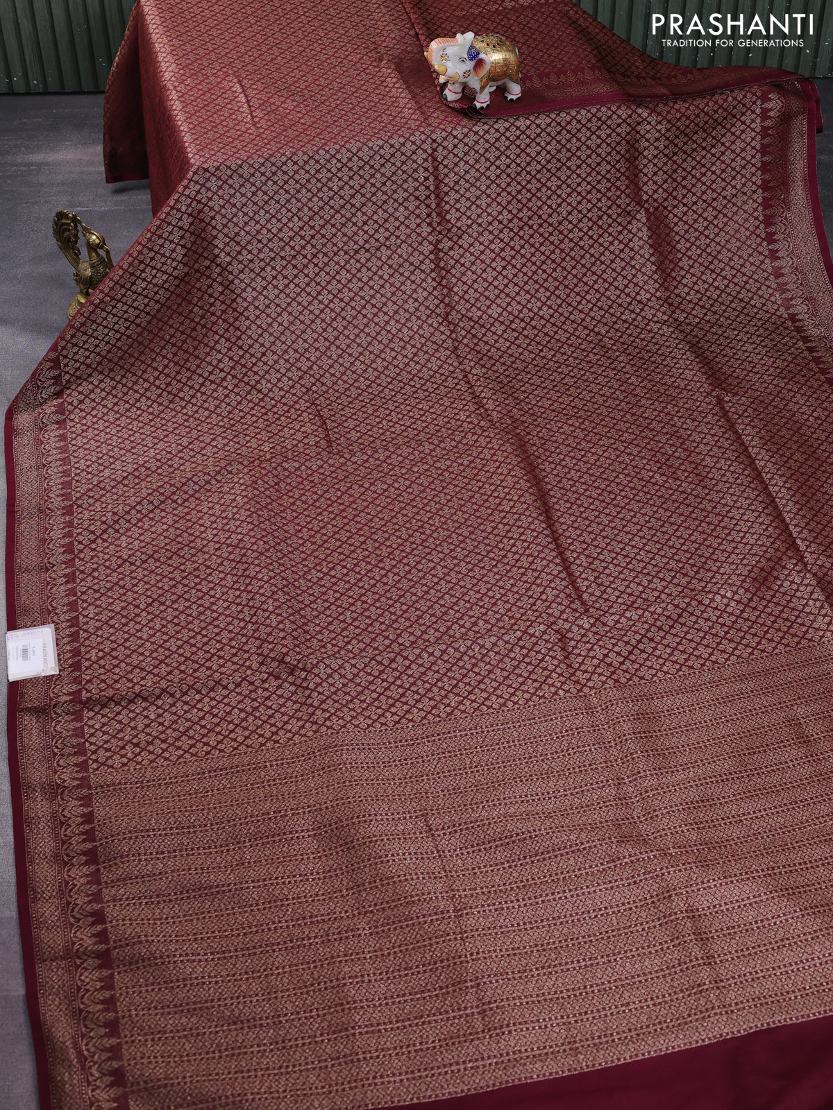 Banarasi semi silk saree maroon with allover thread & zari weaves and woven border