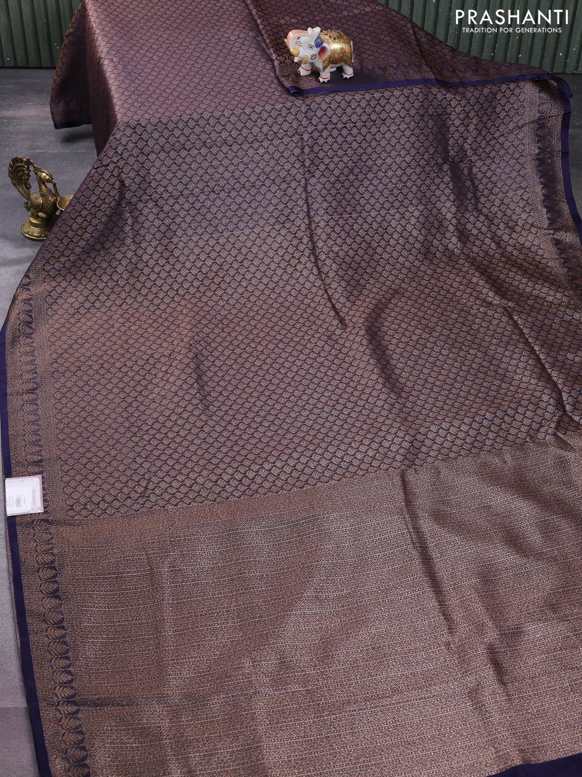 Banarasi semi silk saree navy blue with allover thread & zari weaves and woven border