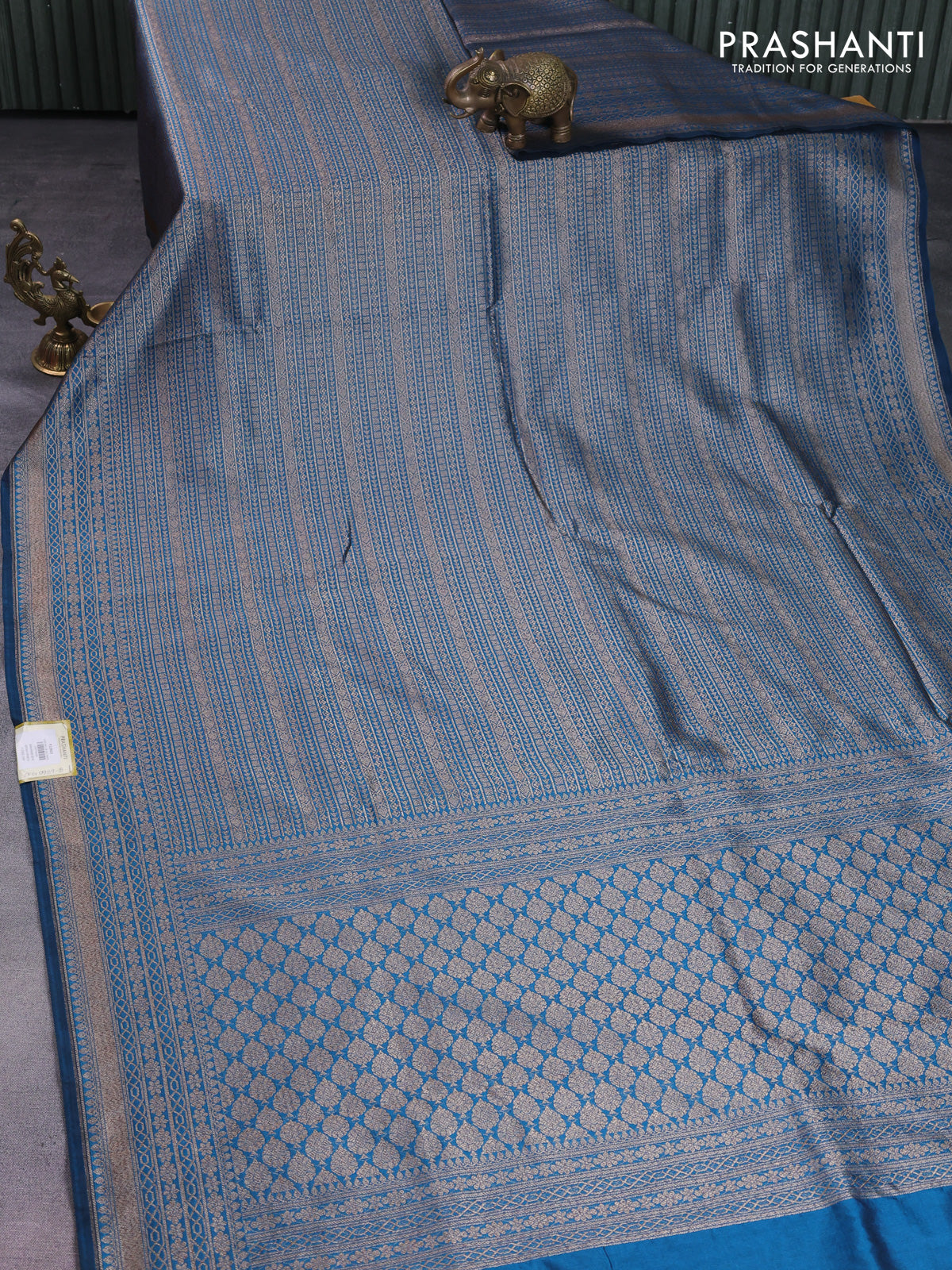 Banarasi semi silk saree peacock blue with allover thread & zari weaves and woven border