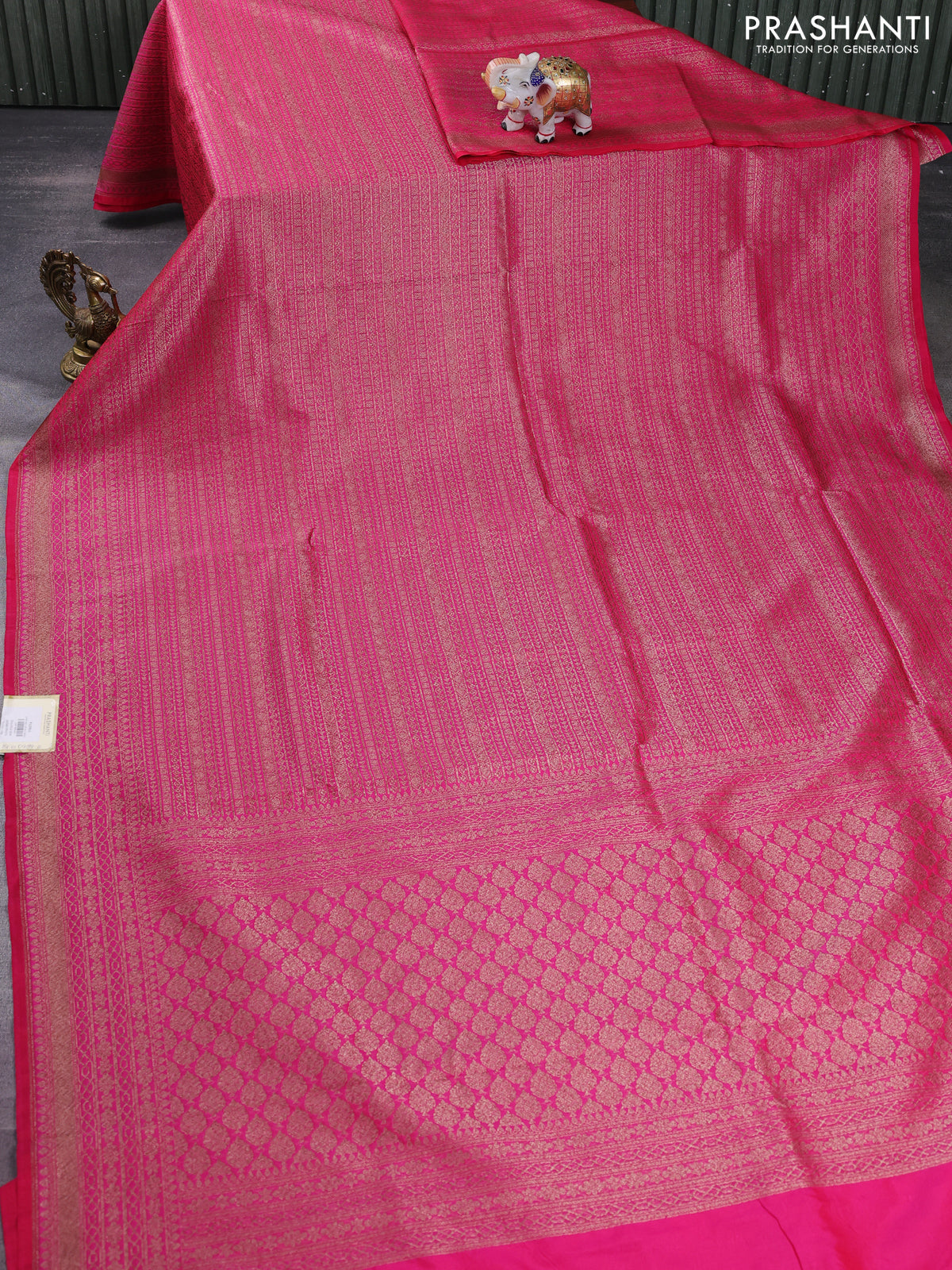 Banarasi semi silk saree pink with allover thread & zari weaves and woven border