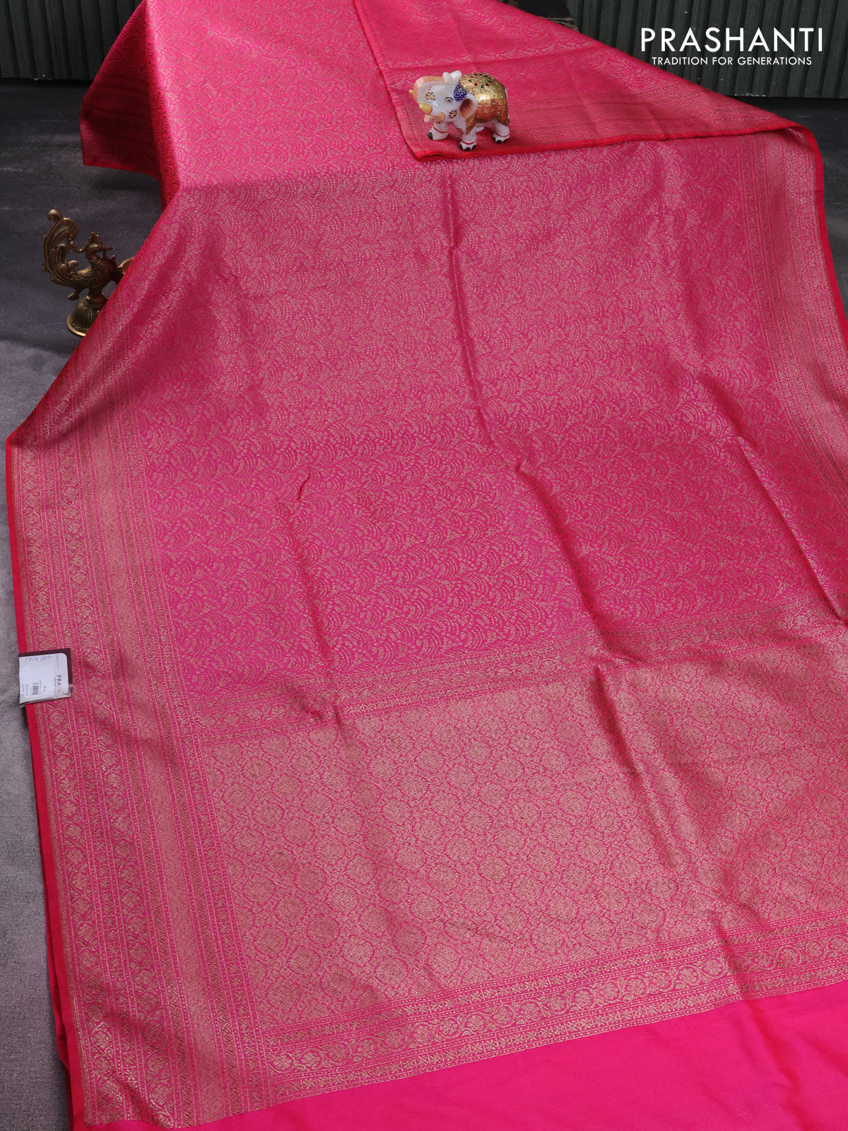 Banarasi semi silk saree pink with allover thread & zari weaves and woven border
