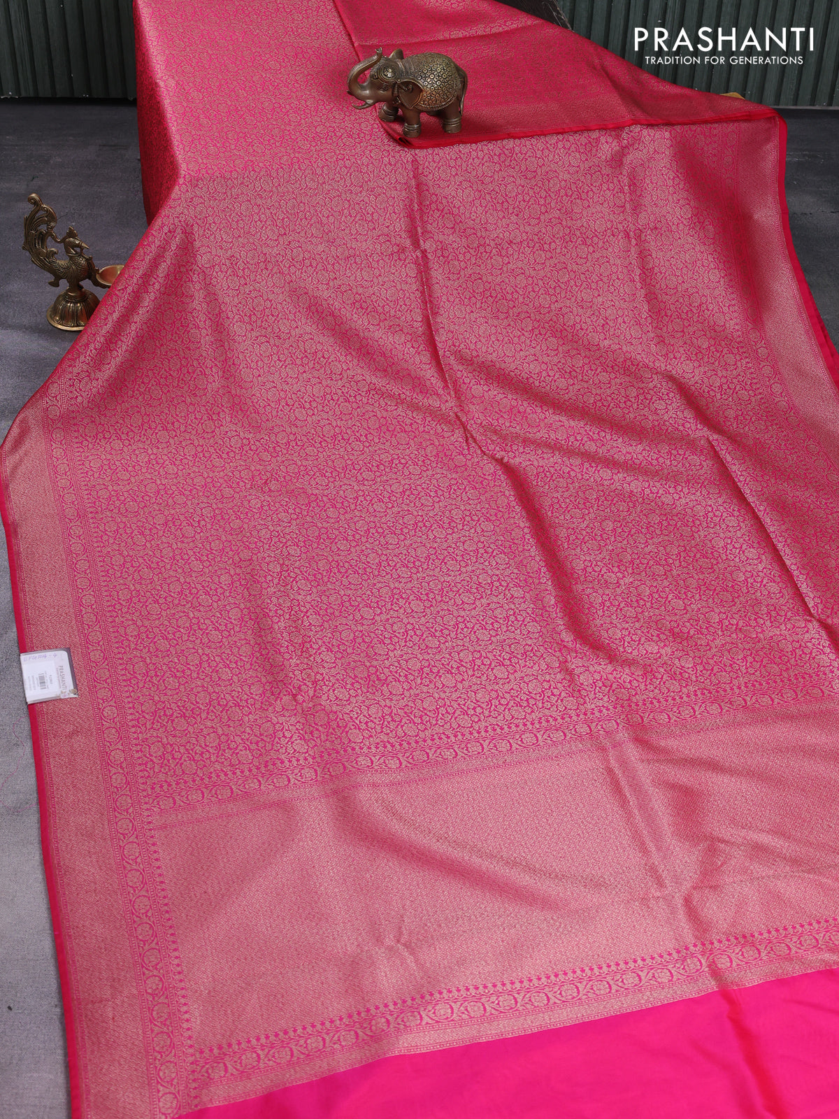 Banarasi semi silk saree pink with allover thread & zari weaves and woven border