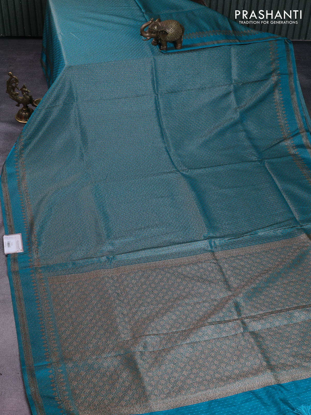 Banarasi semi silk saree teal blue with allover thread & zari woven butta weaves and woven border