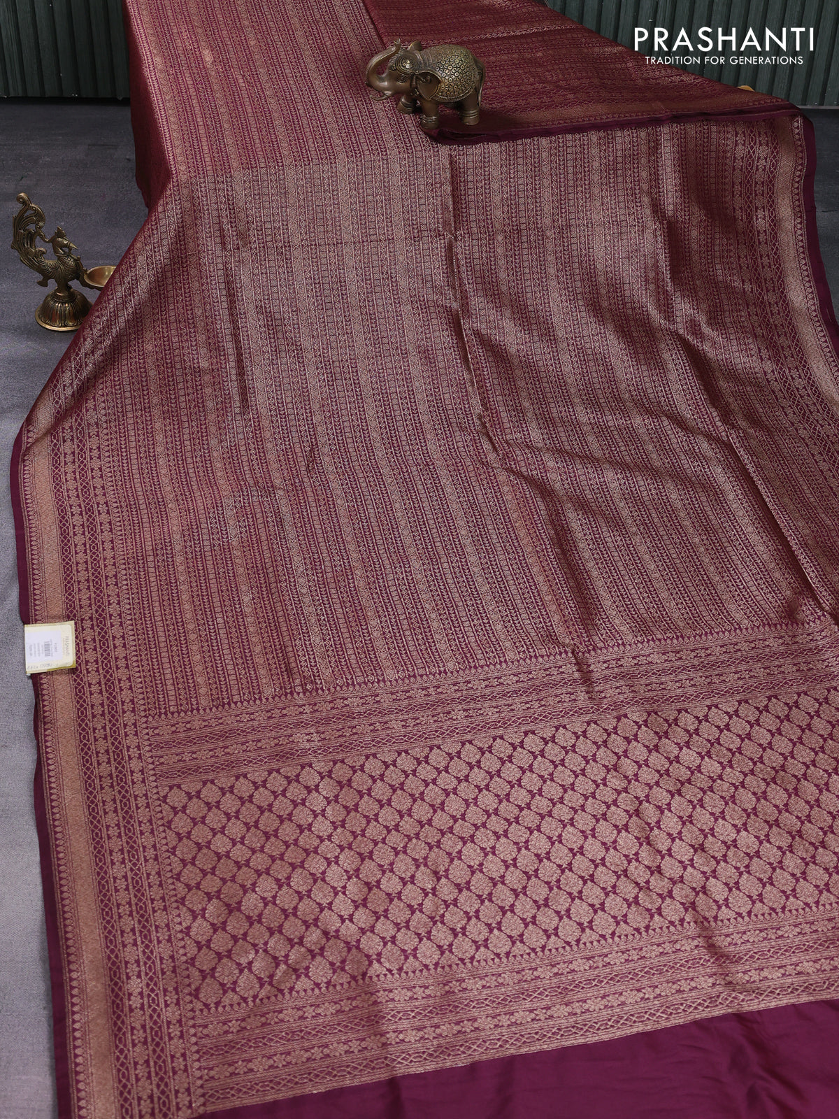 Banarasi semi silk saree wine shade with allover thread & zari weaves and woven border