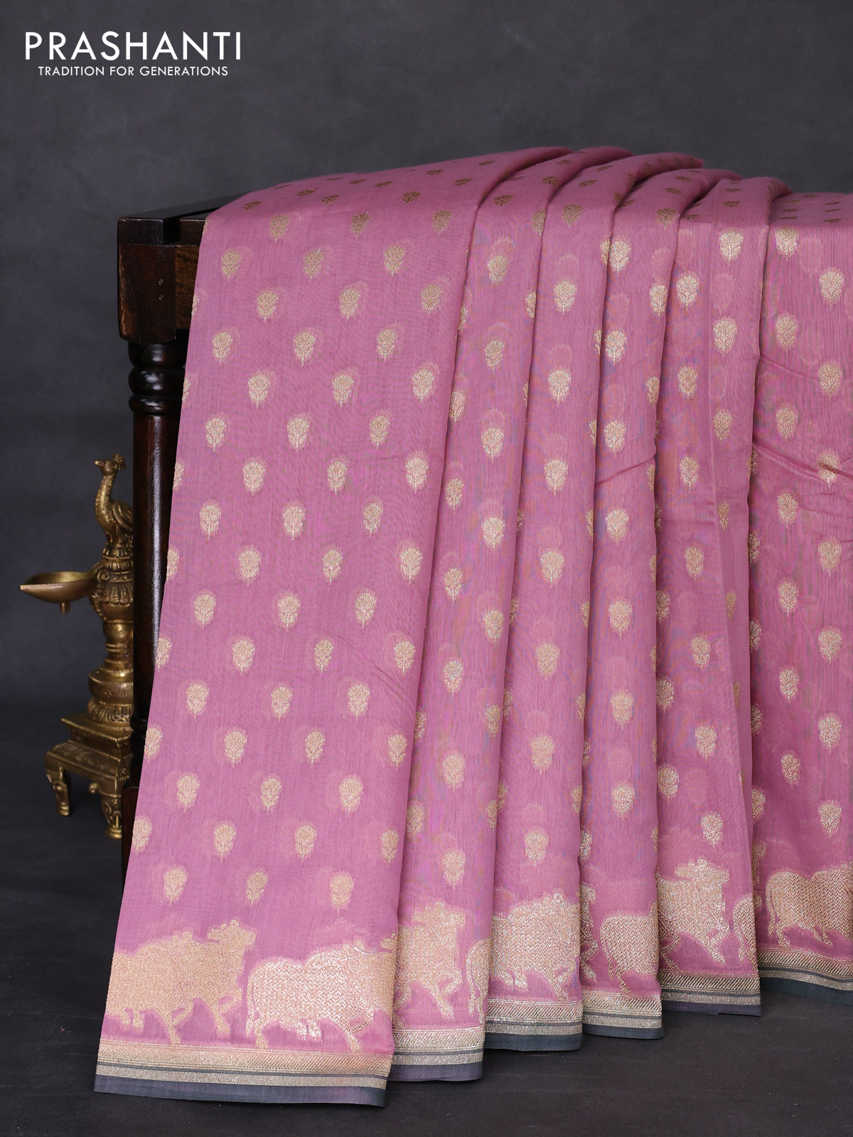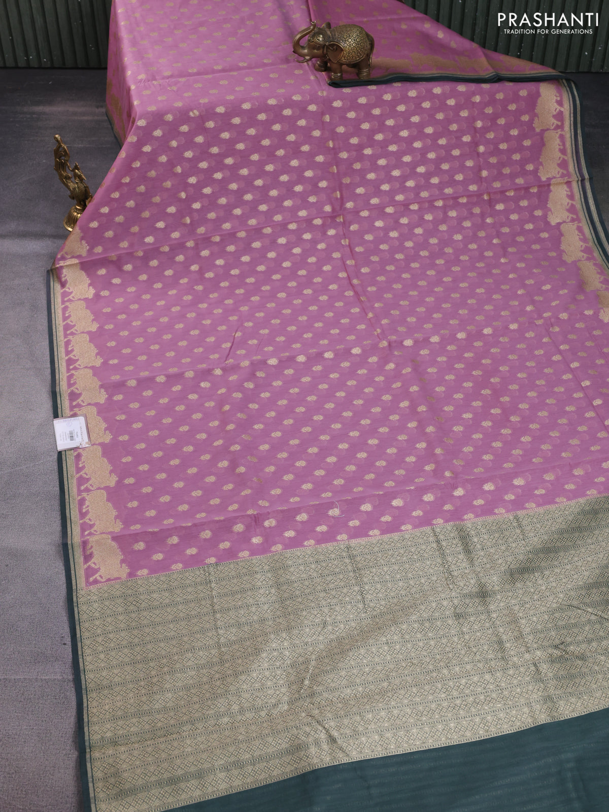 Banarasi silk cotton saree mauve pink and dark peacock blue with allover woven buttas and woven border