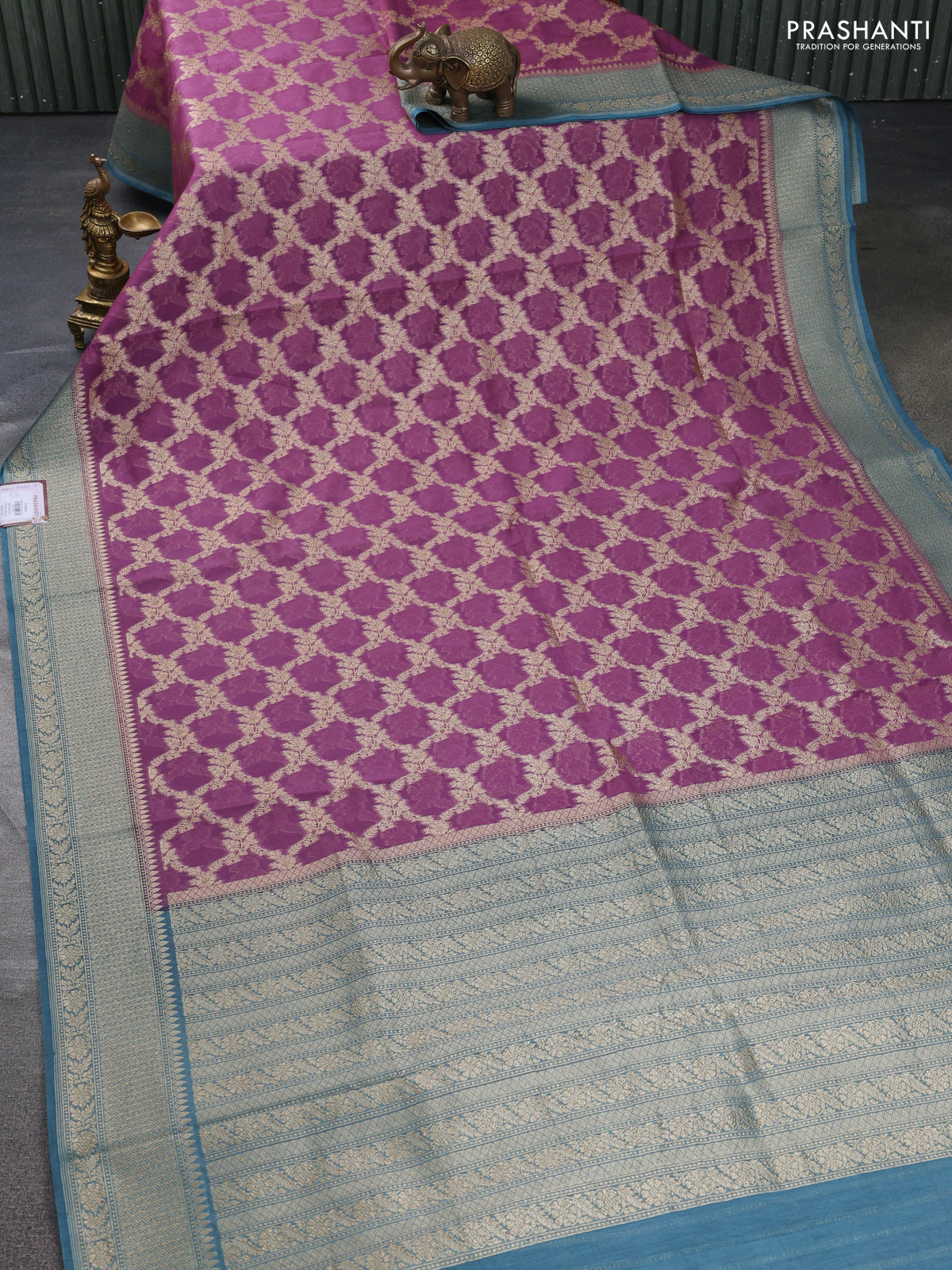 Banarasi silk cotton saree pastel purple and pastel blue with allover thread & zari weaves and woven border