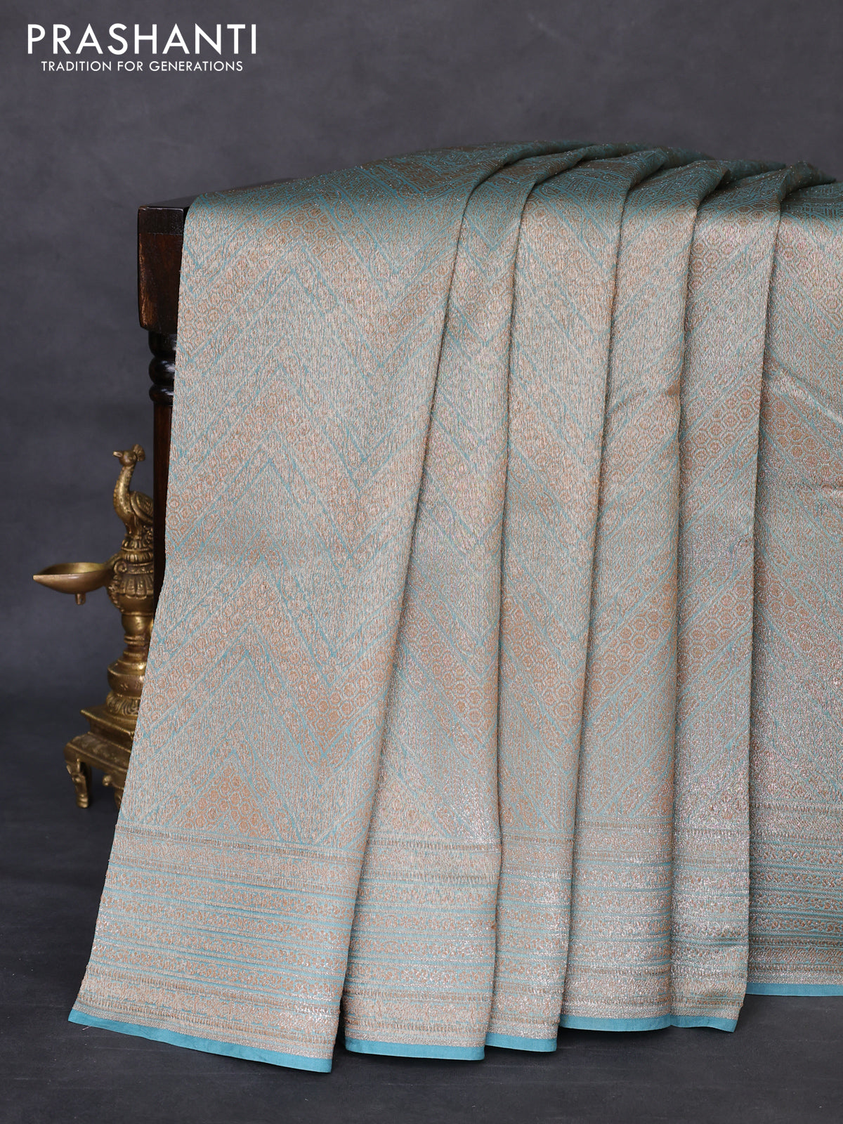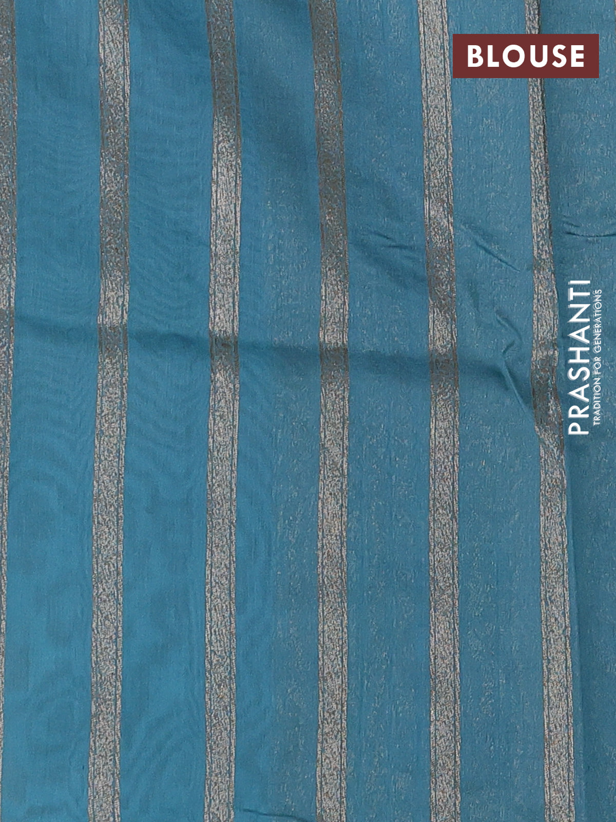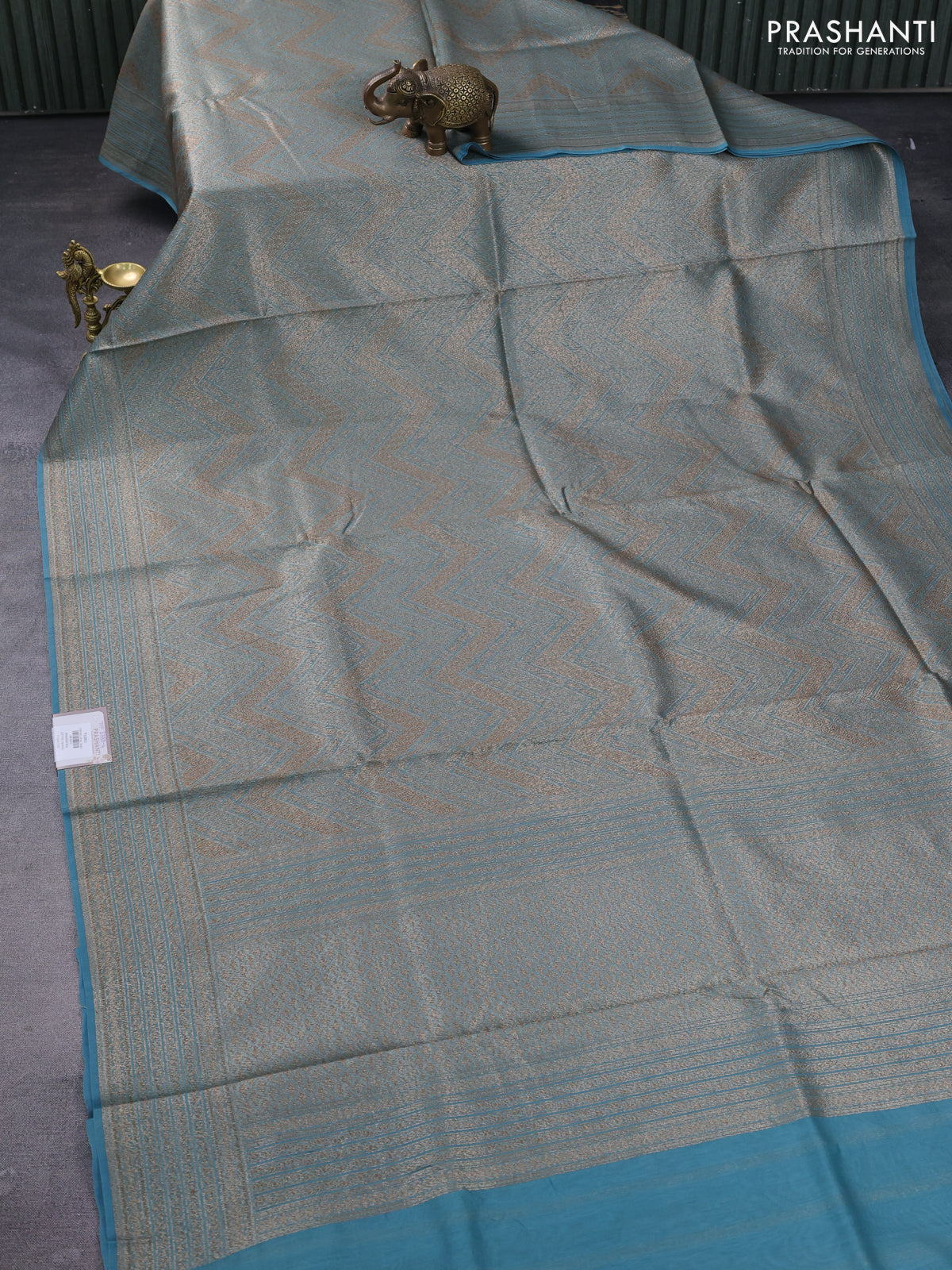 Banarasi silk cotton saree teal blue with allover brocade zari weaves and woven border