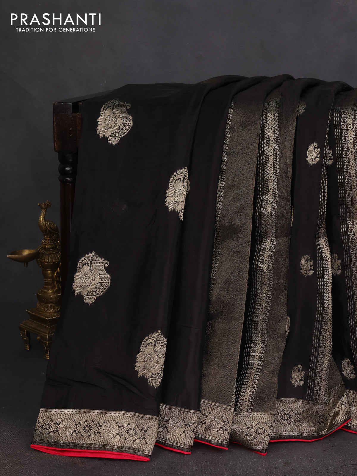 Banarasi silk saree black and pink with allover zari weaves and zari woven border