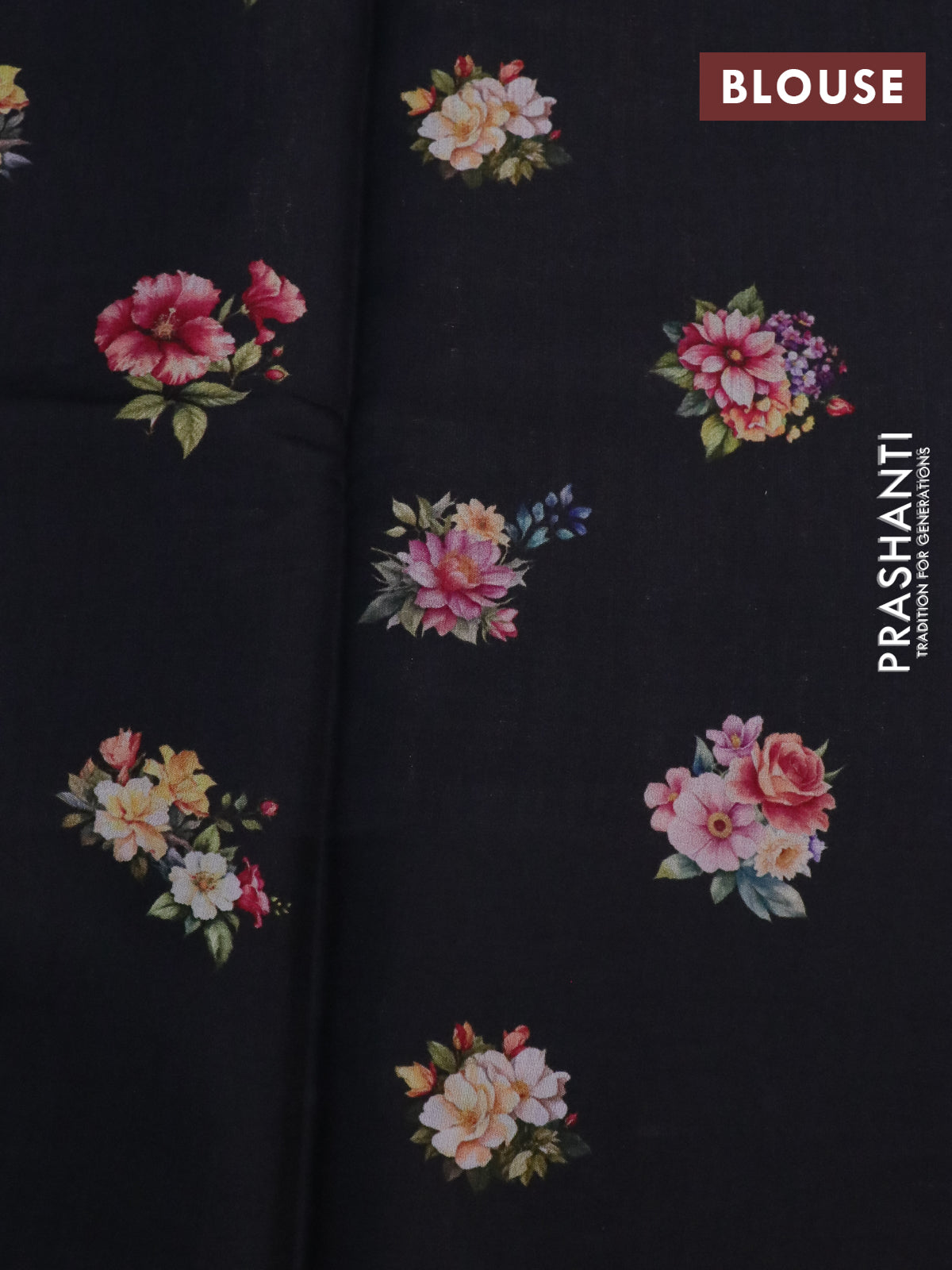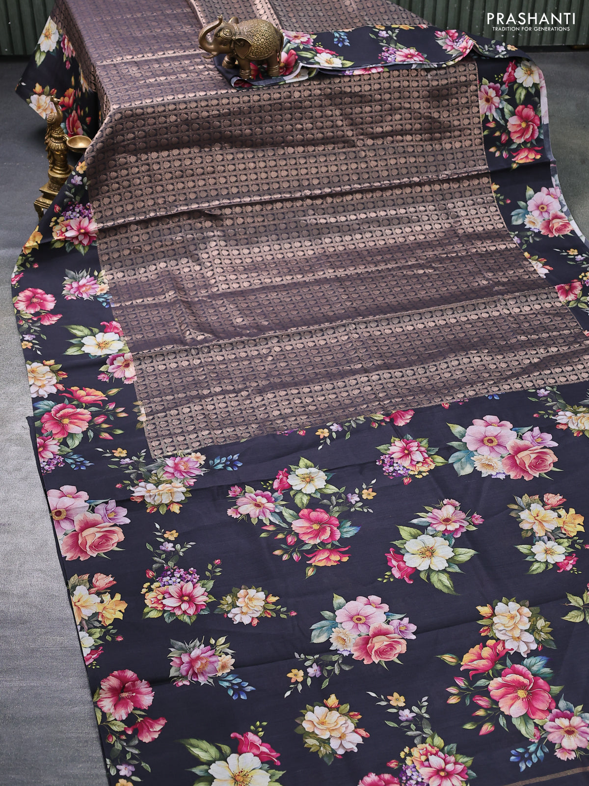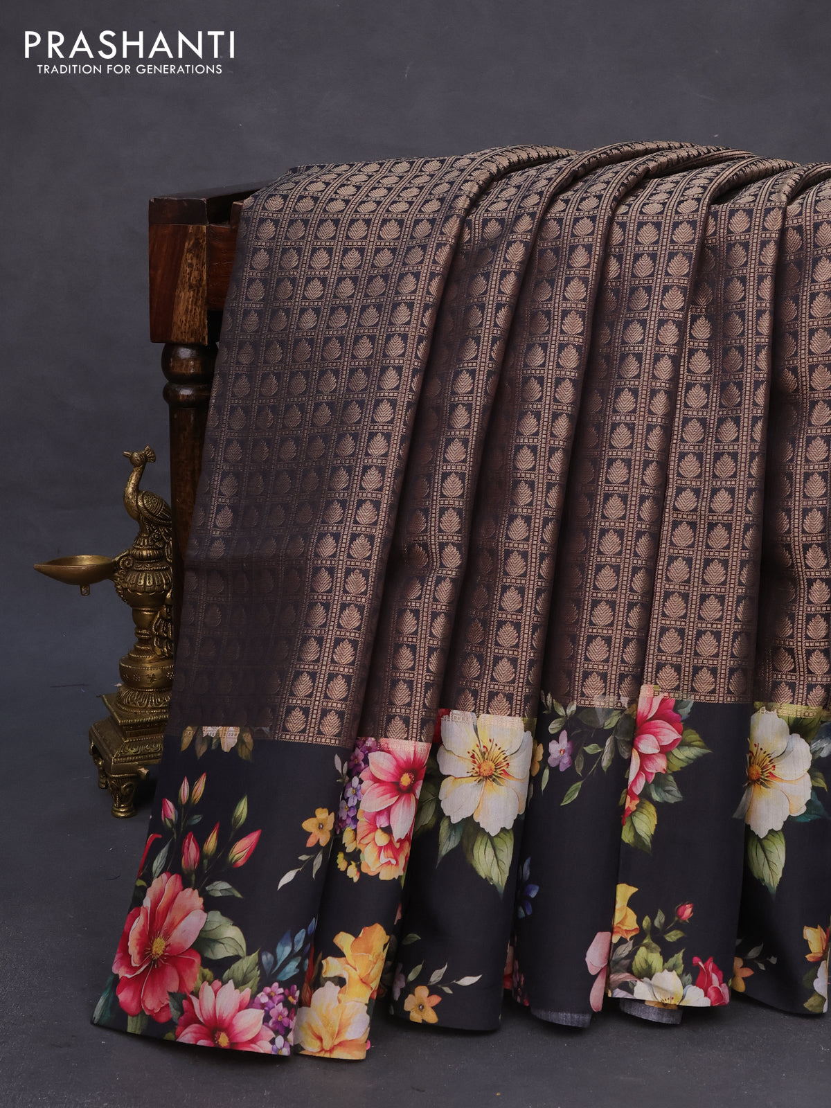 Banarasi silk saree black with allover zari woven brocade weaves and floral digital printed border