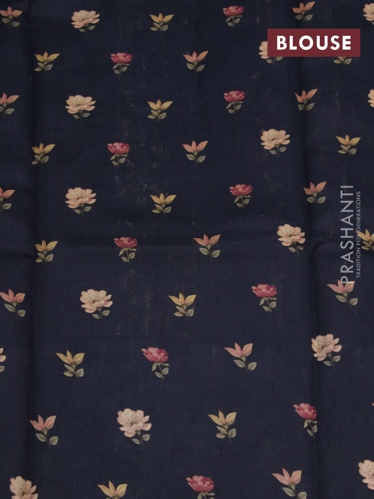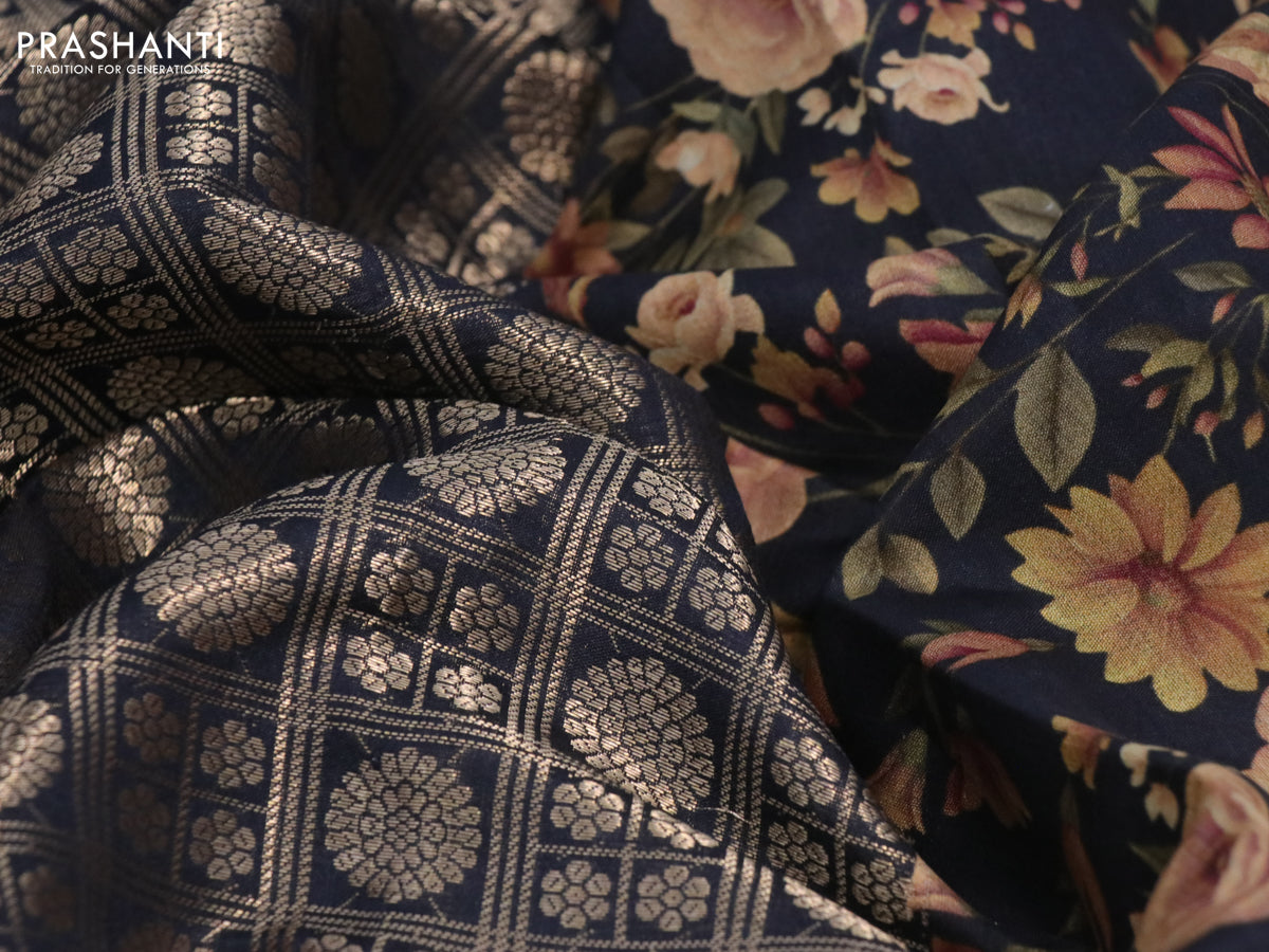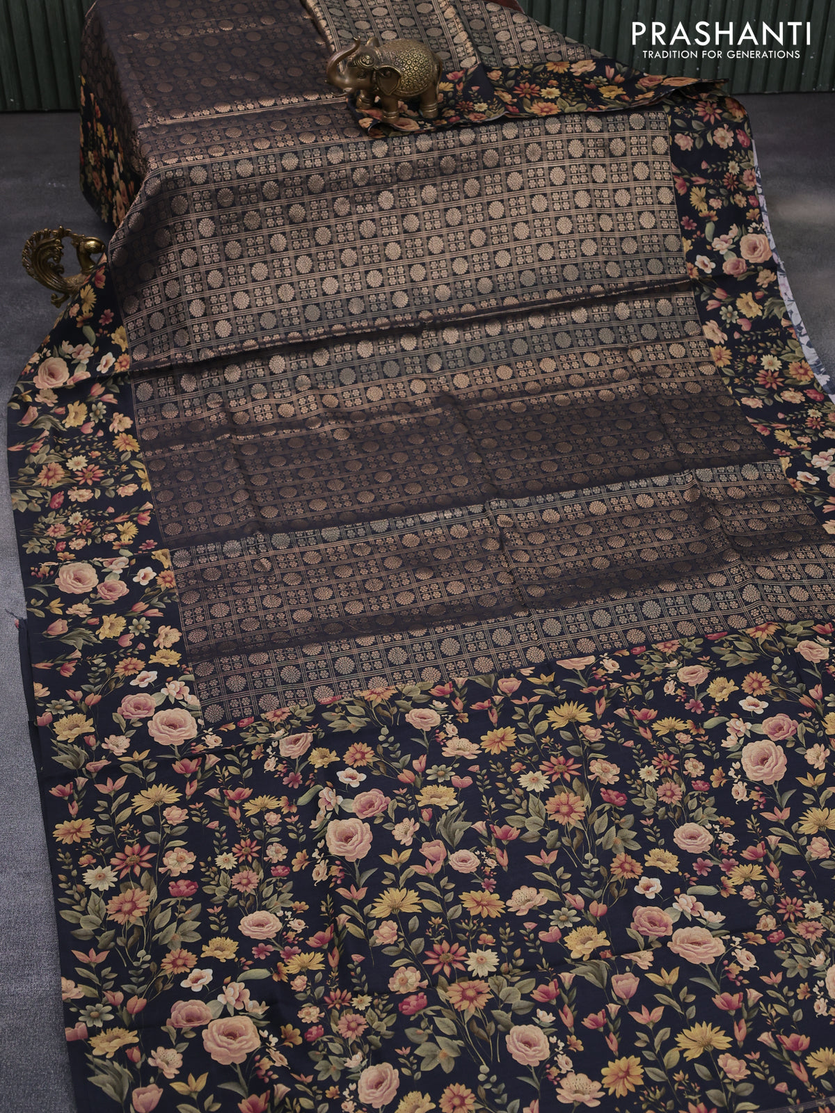 Banarasi silk saree black with allover zari woven brocade weaves and floral digital printed border
