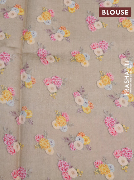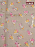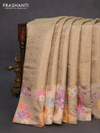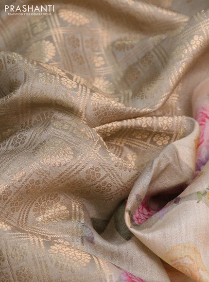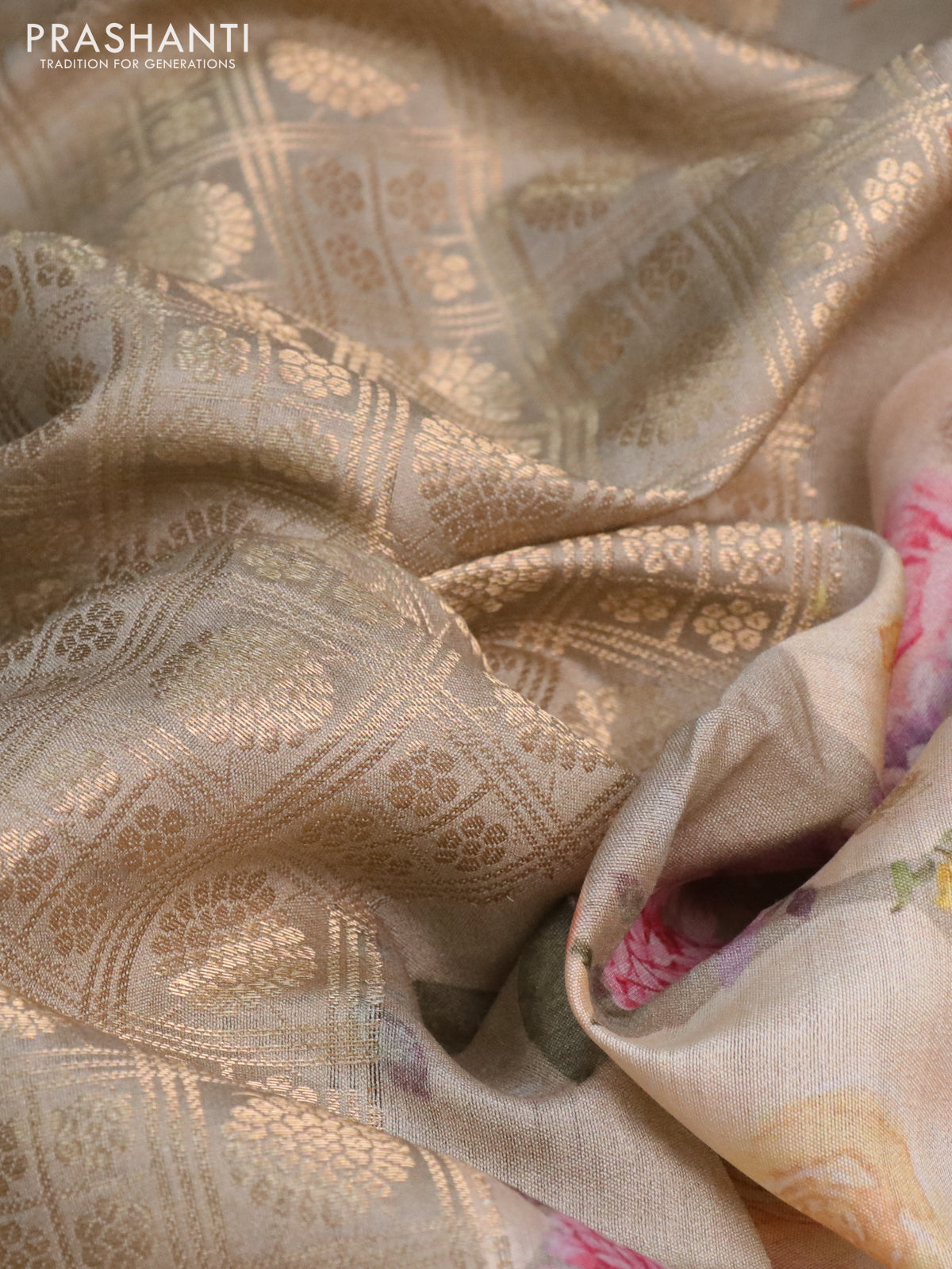 Banarasi silk saree elaichi green with allover zari woven brocade weaves and floral digital printed border
